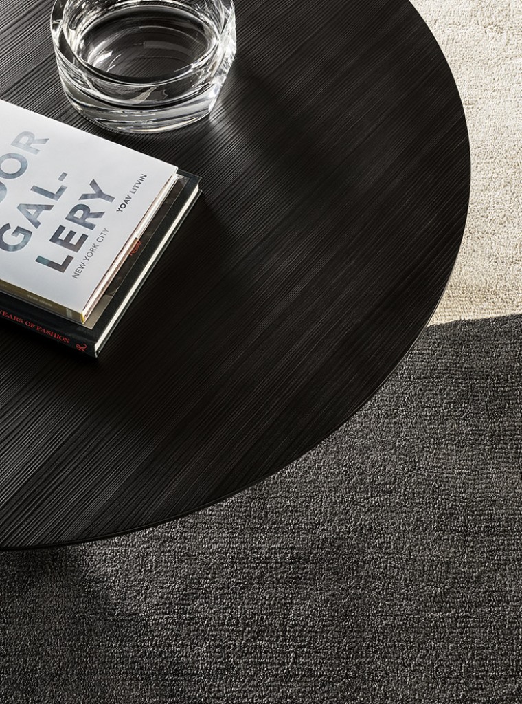 Song边几的基座完全采用黑色漆面的实心拉丝白蜡木制成,体现出非凡的家具制作传统。台面的细加工则体现出不同寻常的材料之选和精致的色彩方案,每一种饰面都对台面风格做出不同的诠释。
