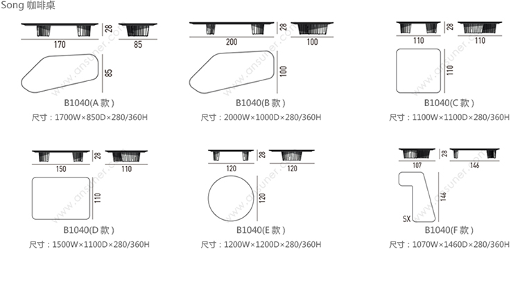 Song 咖啡桌 系列尺寸/示意图