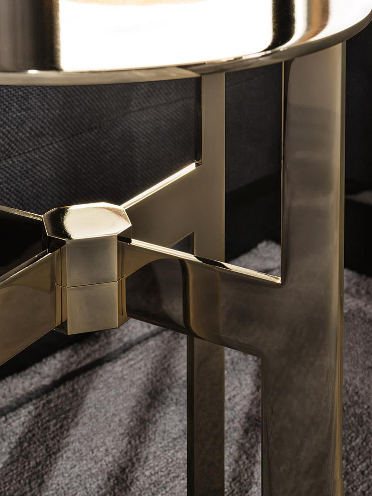 边几的直径为30厘米,其材质只推出淡金色亮光金属表面的版本,极具装饰风格,同时又不失现代感。