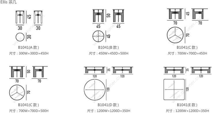 Ellis 茶几 系列尺寸/示意图