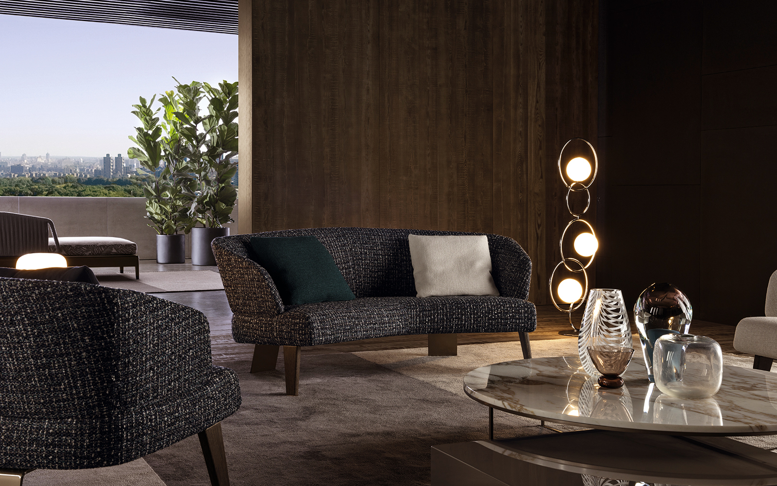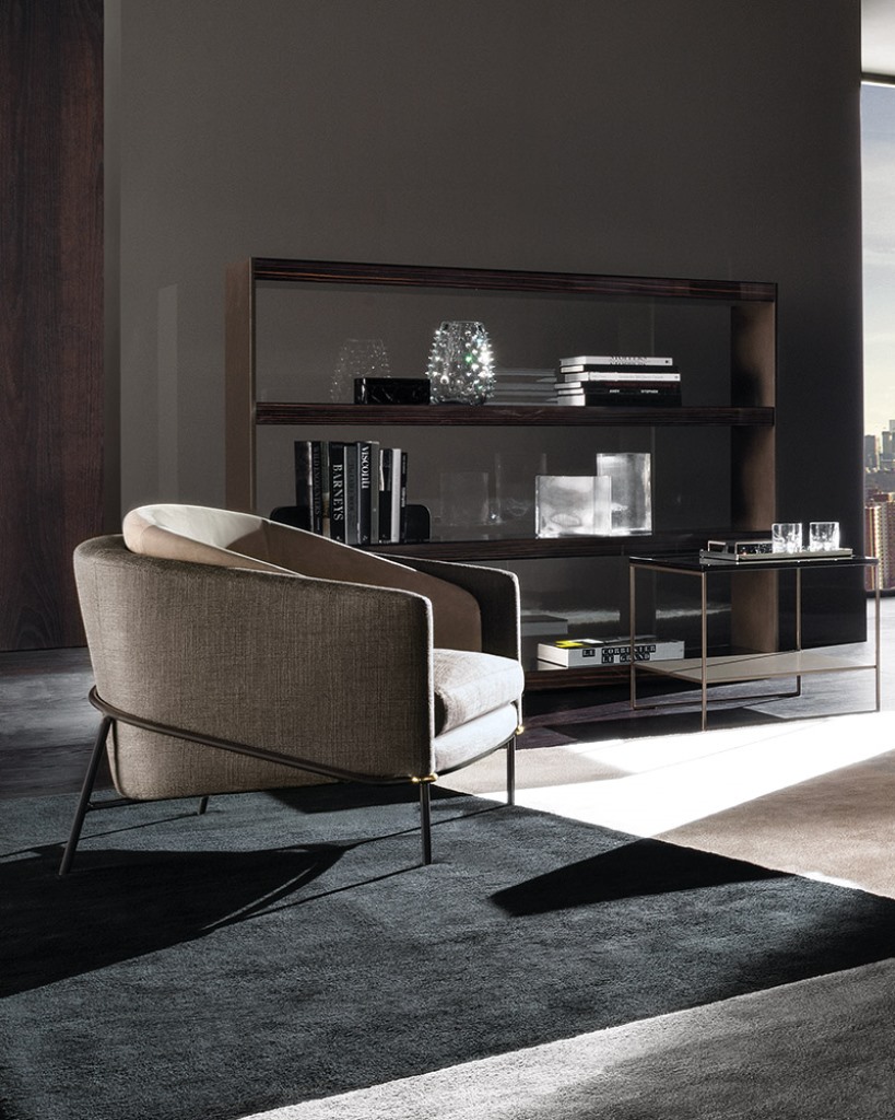 Calder家族有各种尺寸的边几和边桌,这一组全新的设计方案为其带来更为清新时尚的造型。铁架结构如今采用亚光浅铜色的表面。桌面也推出新版本:Sand色亮漆,米灰色的鲍迪豆木饰贴面,Bardiglio Nuvolato和Calacatta的大理石。中间层的桌面也为亚光浅铜漆面的金属。