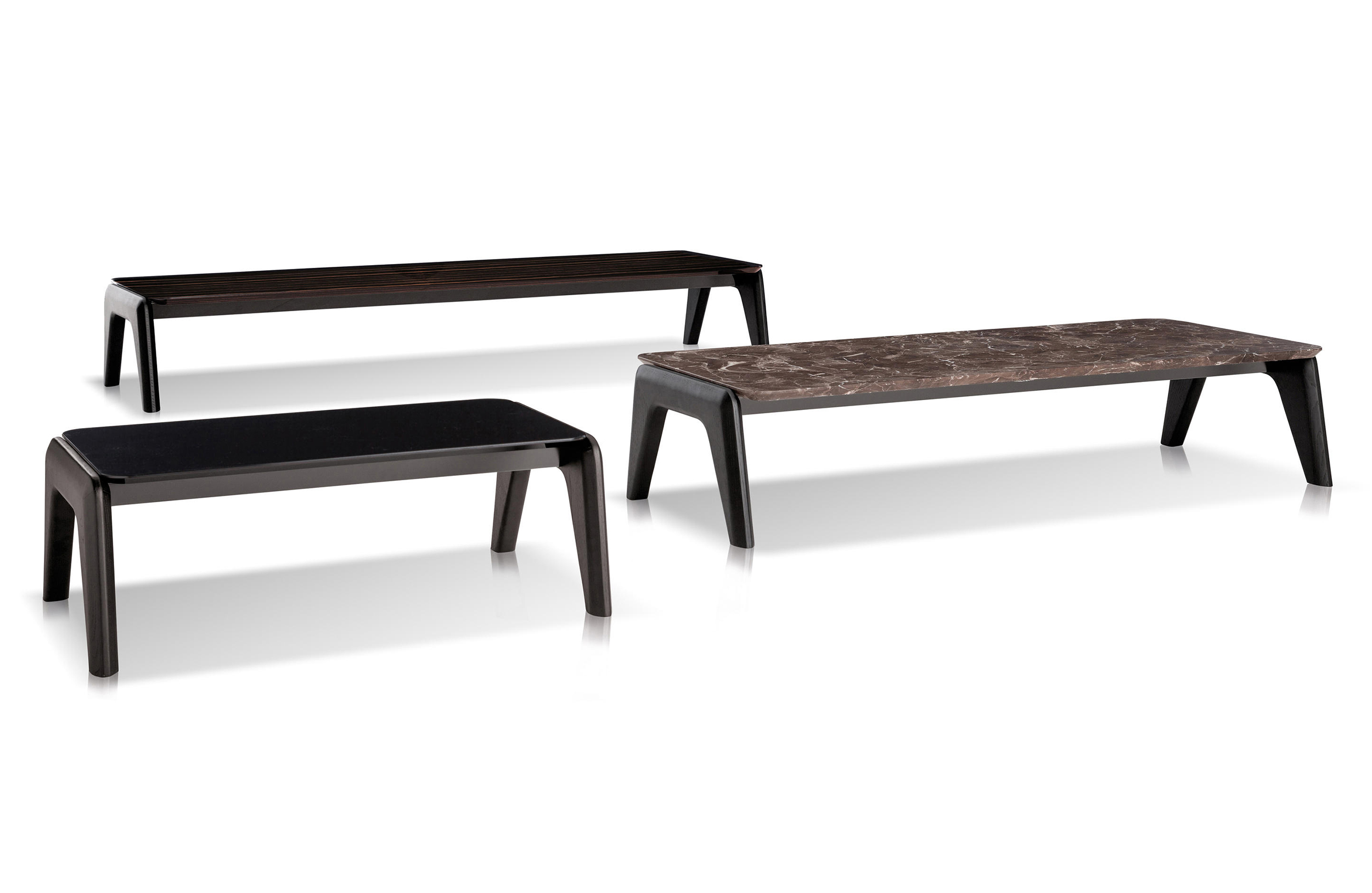 Kirk 木质底座茶几统一以矩形呈现,有三种长度可选。