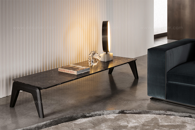 以精美梣木底座致敬传统黑檀木艺术,搭配拥有圆滑转角与柔和饰边的光泽漆面黑檀木、黑色脱蜡琉璃及 Marron Damasco 大理石台板。