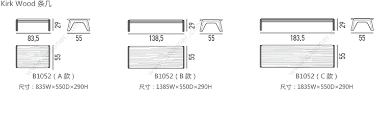 Kirk Wood 条几 系列尺寸/示意图