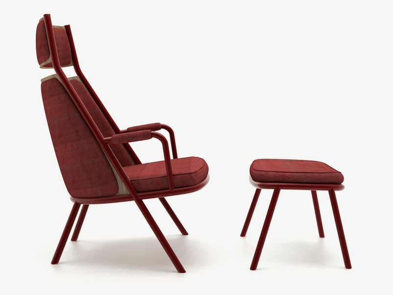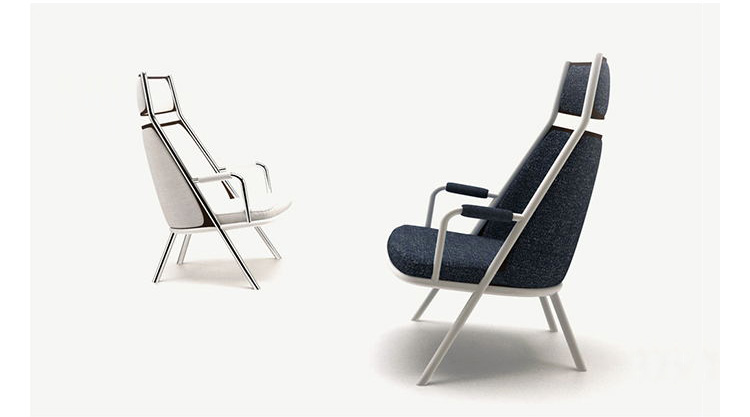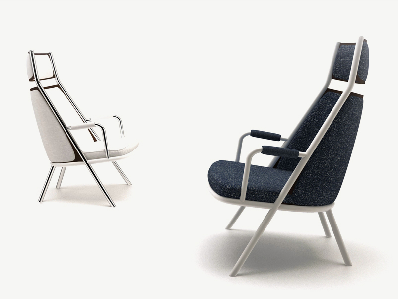 Zafra lounge is certainly characterized by the position of the legs and metal frame which stylize the the seat design. Uniquely the front leg cross diagonally the chair up to the headrest.