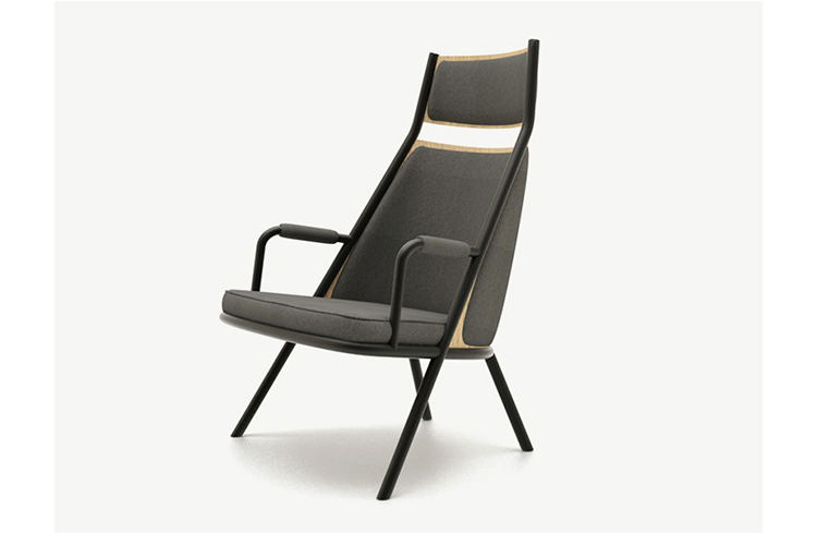 A clever contraposition of hard and so , the plywood back cling to the metal and the upholstery wraps it gently.
