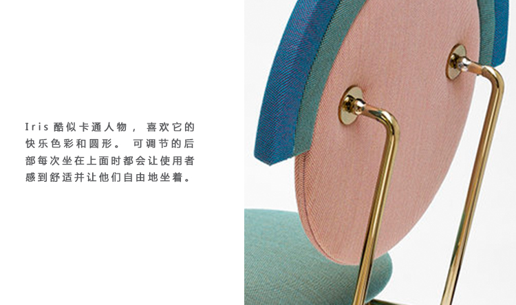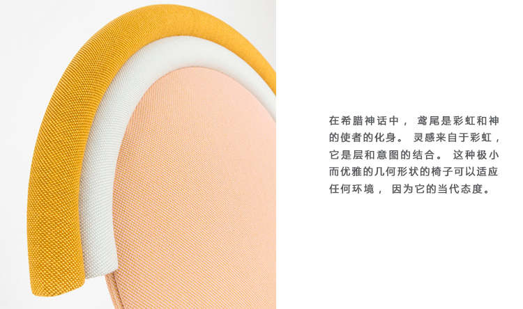 在希腊神话中,Iris(鸢尾)是彩虹和神的使者的化身。灵感来自于彩虹,它是层和意图的结合。这种极小而优雅的几何形状的椅子可以适应任何环境,因为它的当代态度。Iris酷似卡通人物,喜欢它的快乐色彩和圆形。 可调节的后部每次坐在上面时都会让使用者感到舒适并让他们自由地坐着。