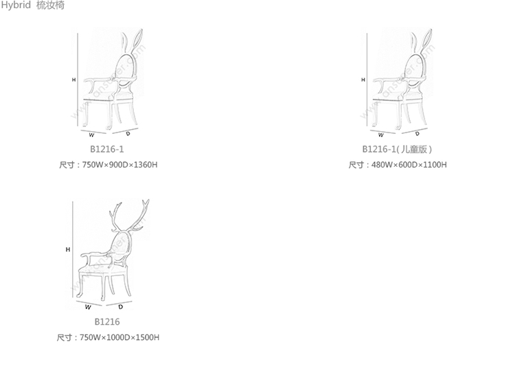 Hybrid 兔子梳妆椅 系列尺寸/示意图