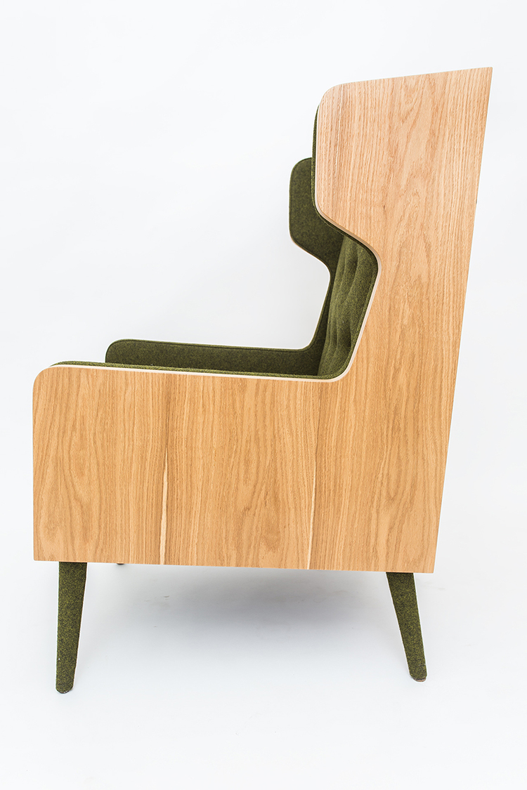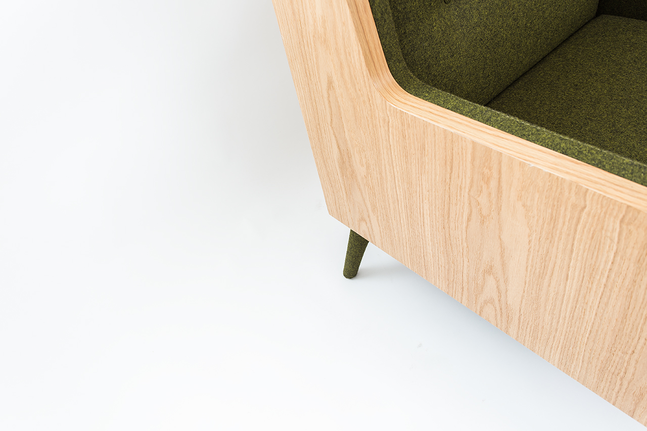 “FELT”旨在为怀旧艺术装饰扶手椅带来现代感。 结合木材和毛毡的天然材料,在粗糙和光滑之间形成对比,为其环境带来清新感。 材料的颜色经过精心挑选,以便相互协调。