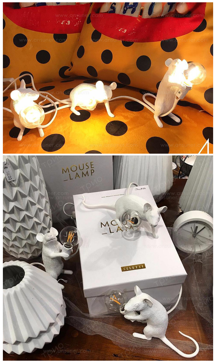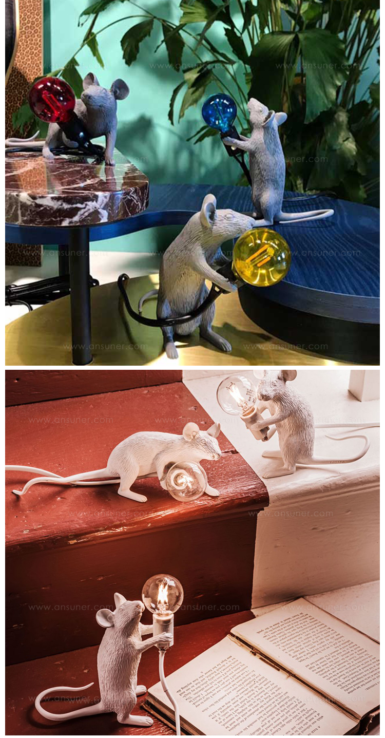 由Marcantonio Raimondi Malerba为Seletti设计的鼠标灯座为设计师的动物灯系列增加了一个新的品种。就像猴子灯,它美丽地再现了动物在树脂中的特点,这些鼠标灯显示出同样的注重细节和雕塑设计。同时以温暖的光芒照亮他们。这款设计灯是为室内使用而创建的,它可以单独使用,也可以与来自同一系列的其他两个版本配对使用。由树脂制成,有一层白色的光泽。