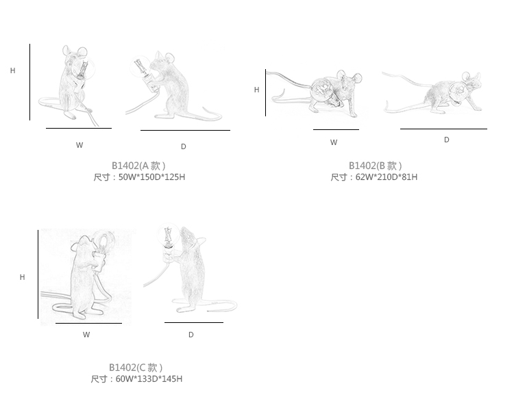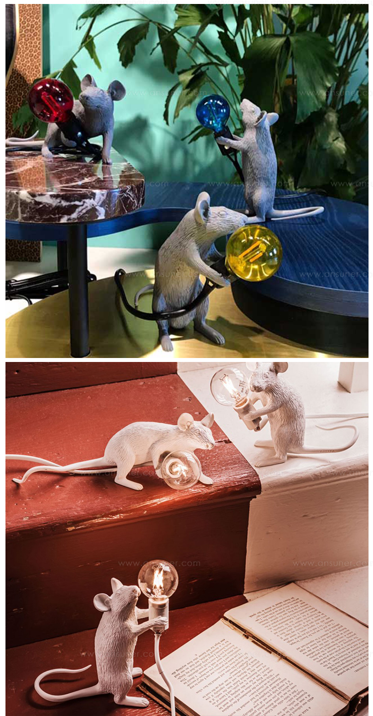 由Marcantonio Raimondi Malerba为Seletti设计的鼠标灯座为设计师的动物灯系列增加了一个新的品种。就像猴子灯,它美丽地再现了动物在树脂中的特点,这些鼠标灯显示出同样的注重细节和雕塑设计。同时以温暖的光芒照亮他们。这款设计灯是为室内使用而创建的,它可以单独使用,也可以与来自同一系列的其他两个版本配对使用。由树脂制成,有一层白色的光泽。