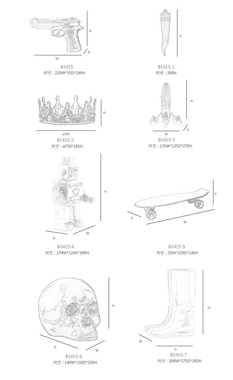 与Memorabilia系列一样,Memorabilia Gold是一系列独立装饰品,让人想起文化或历史事件,这也增加了兴趣点。 “我的滑板”实际上被设计用作食品拼盘,用于寿司或冷肉等食品,体现了Seletti对功能性艺术的热爱!