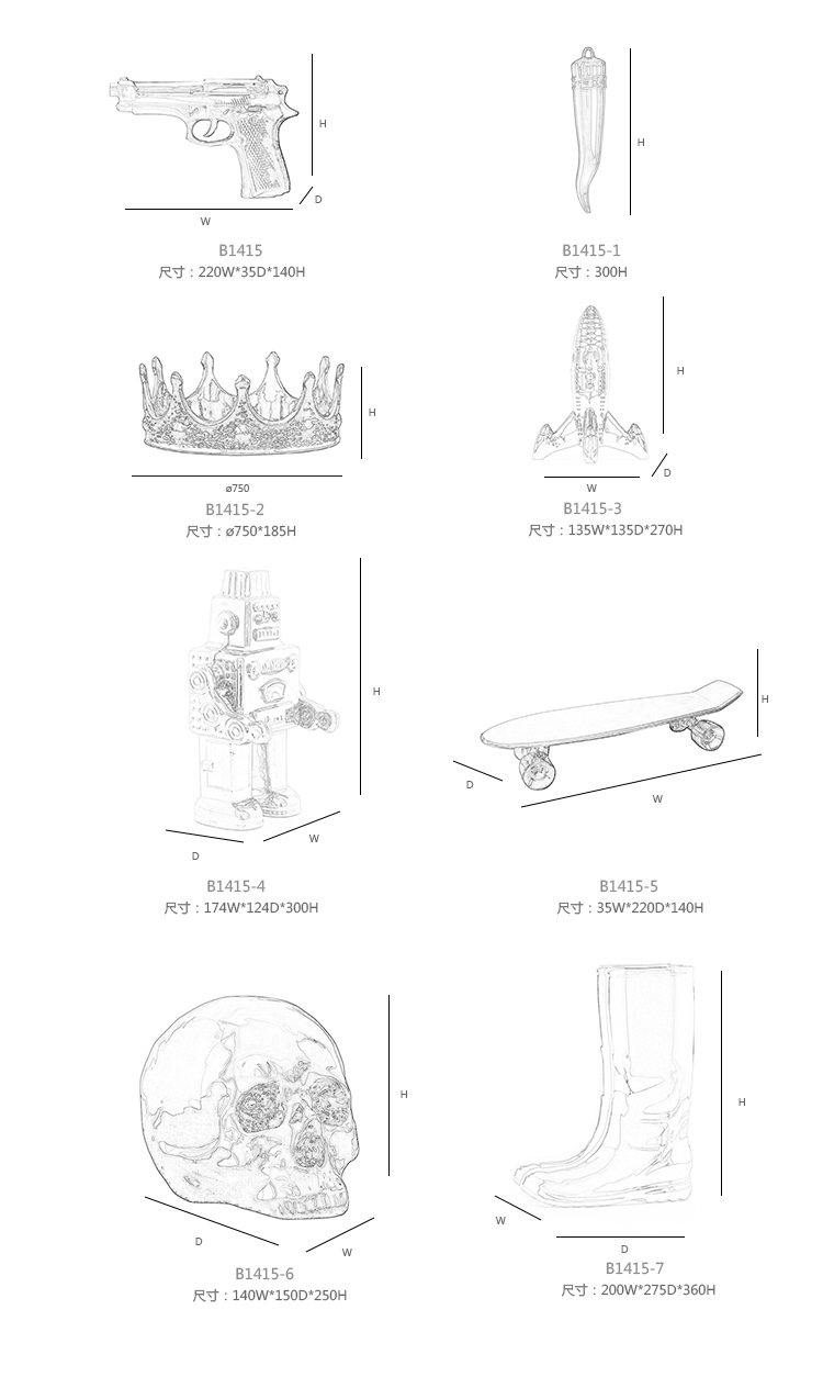 与Memorabilia系列一样,Memorabilia Gold是一系列独立装饰品,让人想起文化或历史事件,这也增加了兴趣点。 “我的滑板”实际上被设计用作食品拼盘,用于寿司或冷肉等食品,体现了Seletti对功能性艺术的热爱!