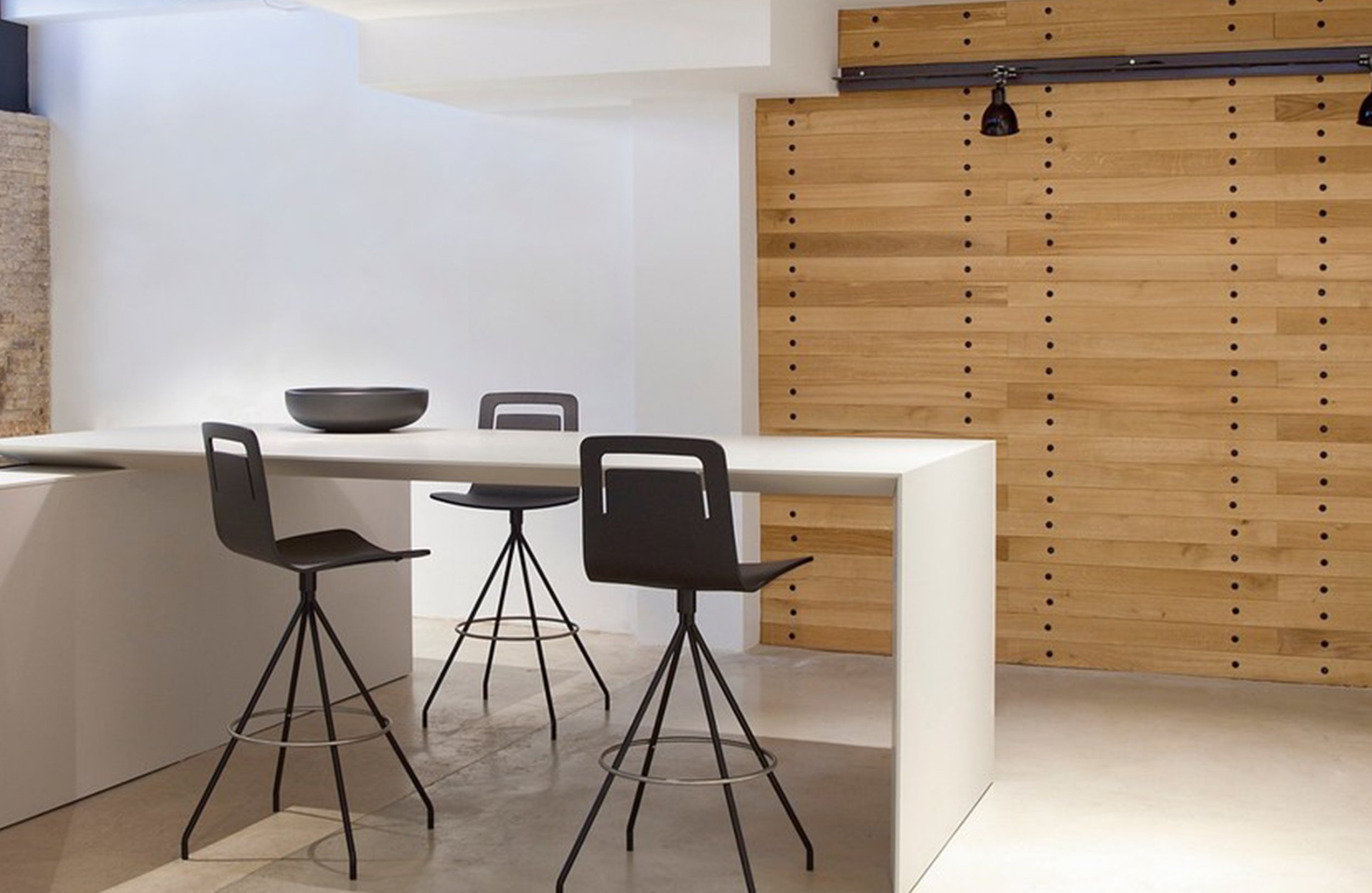 胶合板橡木凳子,饰有各种饰面。座椅可以是木质的,带软垫的垫子或完全软垫的光滑或条纹版本。适合家庭和合同使用。它的名字是对它后面的插槽的引用,它既可以作为轻松移动它的手柄,也可以作为悬挂手提包等的支撑。也有武器。