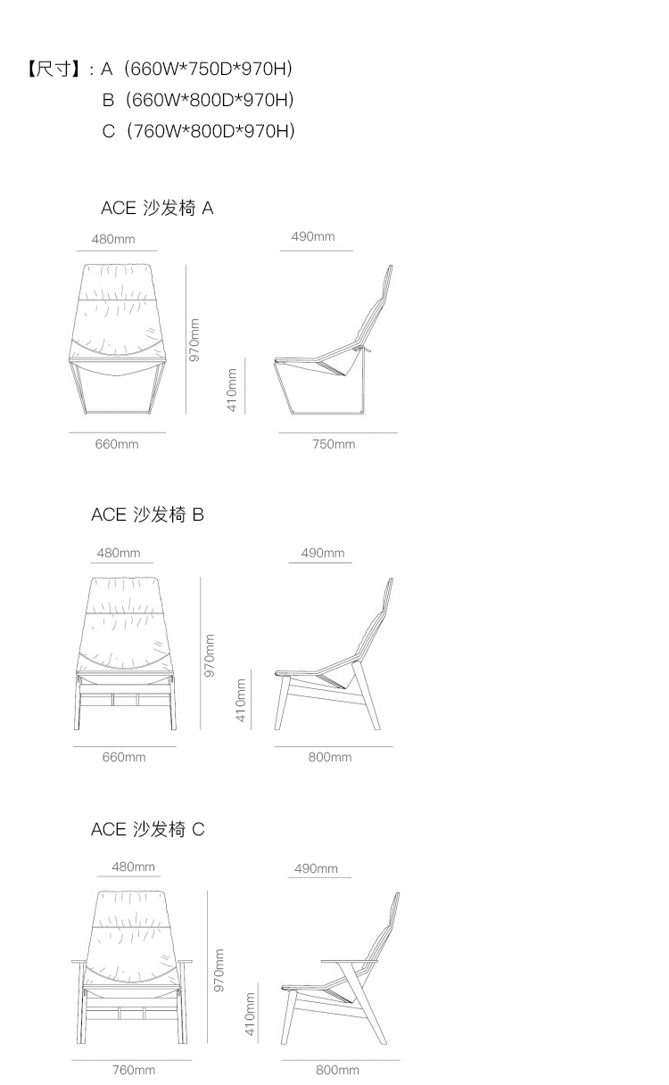 ACE 沙发椅 系列尺寸/示意图