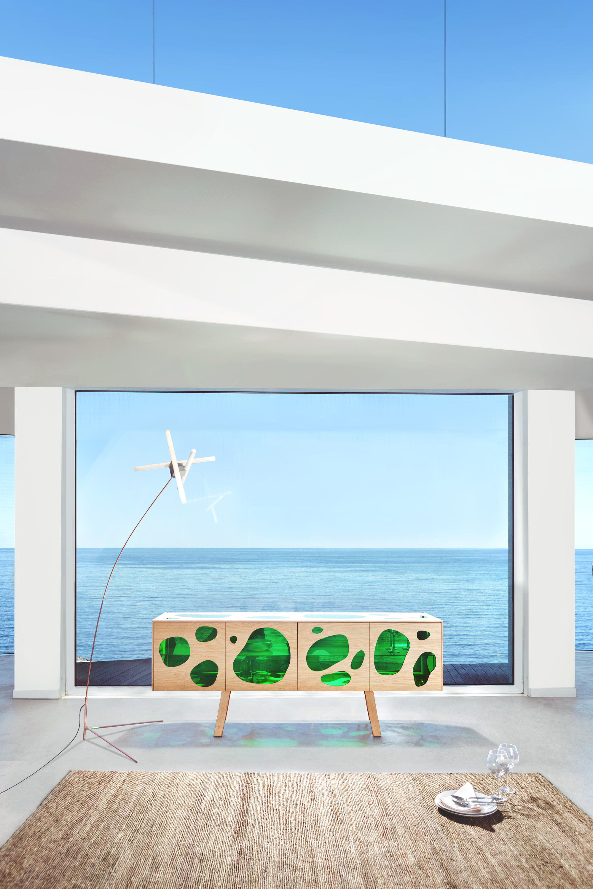 Aquário-带有门的木制餐边柜。 坎帕纳兄弟(Campana Brothers)设计的新橱柜Aquário。“我们与BD Barcelona Design的艺术总监Ramónúbeda保持联系已经有几年了。我们讨论了已经成熟并成为我们制作的自助餐的创意。费尔南多·坎帕纳(Fernando Campana)解释说:“灵感来自水族馆的想法,以创造出这件作品。” 温暖和寒冷。它已经成为我们设计语言的一部分。我也想玩对重的想法。玻璃的轻便和木头的体积。第一个的非物质性和第二个的物理性。” Fernando补充说:“餐边柜由木材,白蜡木或松木以及彩色玻璃门制成。