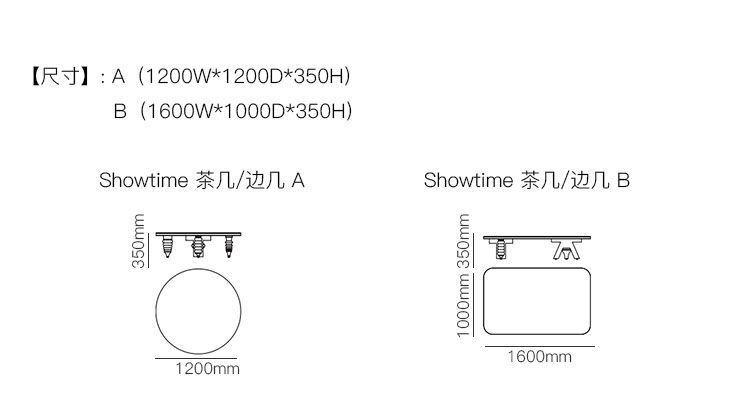 Showtime 茶几/边几 系列尺寸/示意图