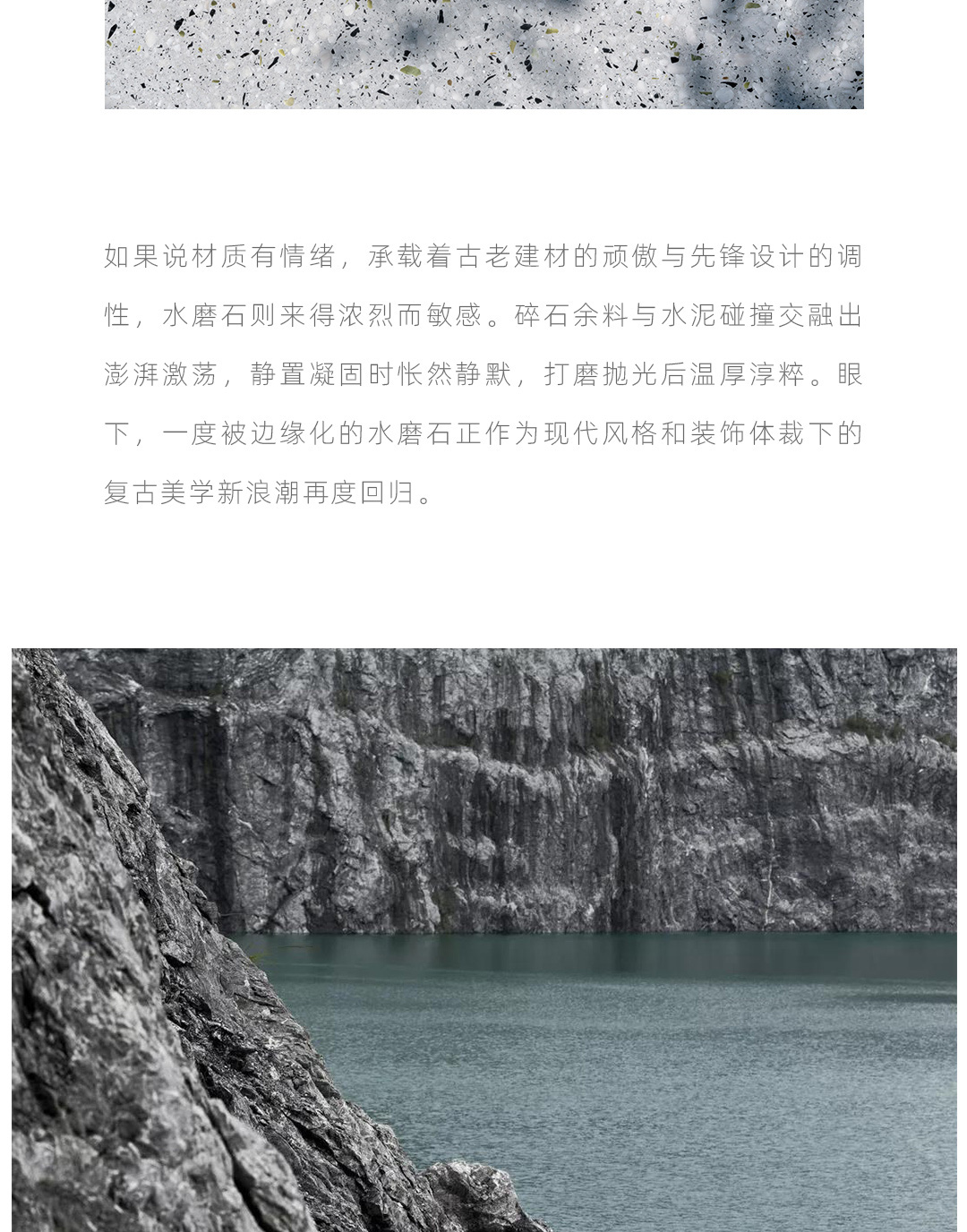 以材质再生为基本手段的水磨石系列,将陶瓷废渣再生成简洁形态的日常性家具,以衍生产业的形式回归到大众层面的使用中。 中国佛山,这片拥有全球最大最成熟的陶瓷产业链和产业集群的建筑陶瓷工厂的土地,承载着每年400万吨陶瓷废弃物带来的环境污染。 以材质再生融入日常,不仅是激发商业价值的大胆尝试,是环保理念的日常化实践,更是对自我尊严的基本坚守和追求,我们探寻陶瓷跨越地域局限的一种当代突破!