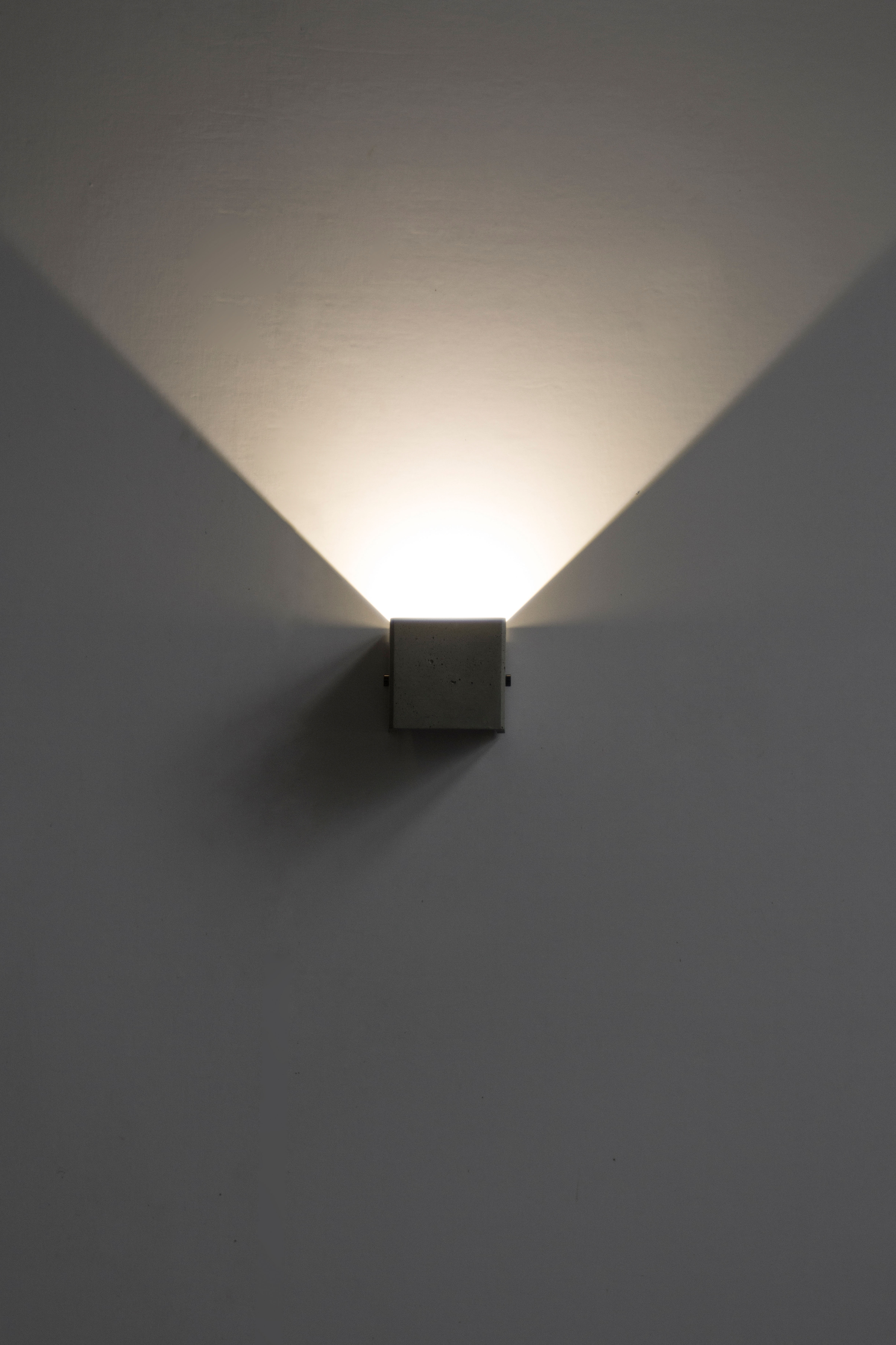 "V"壁灯可室内与户外兼用,防水等级 IP65; 内含挡光黑色金属片可以自由调节光线方向,呈现的光影效果丰富多变。