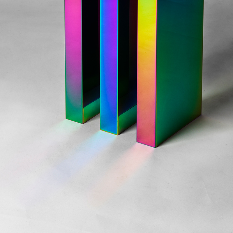 横竖横竖重复的组合方式,是来自草根的语言。常见工地搭台、围板,木方条拼组的,只需一次性的耐用而形成粗暴又稳固的结构方式。 极其炫丽浮夸的幻彩与粗鲁蛮横的草根形式形成反差,产生迷幻、跳脱、超现实的戏剧感受,似乎欲望的幻相,真实得不切实际。