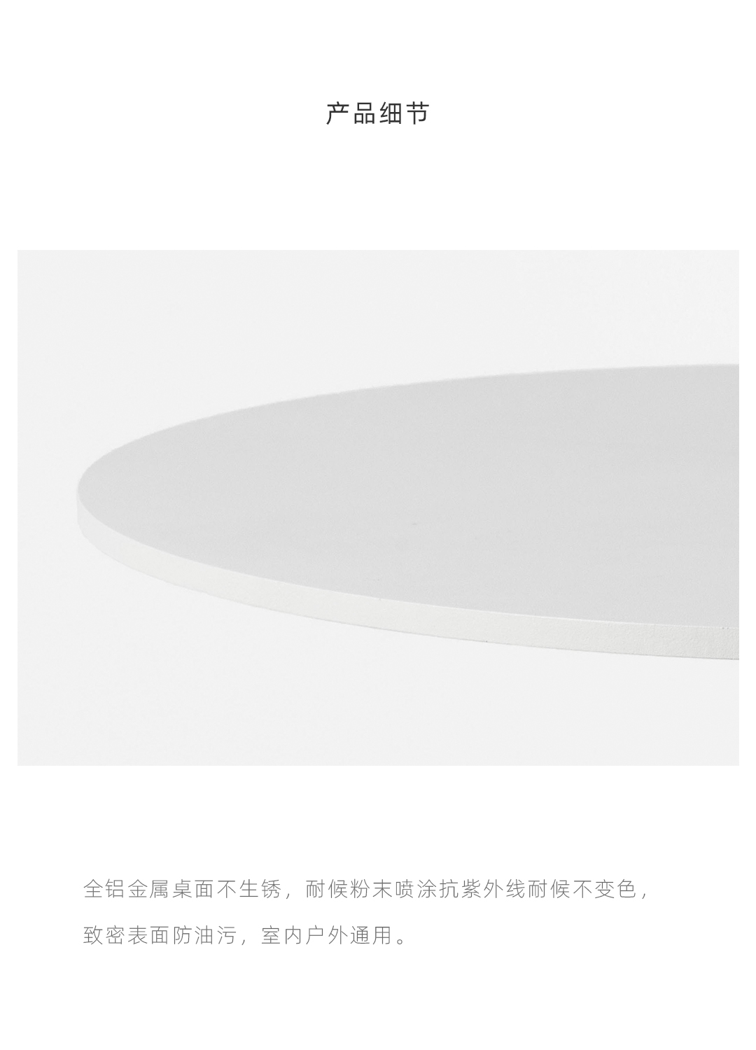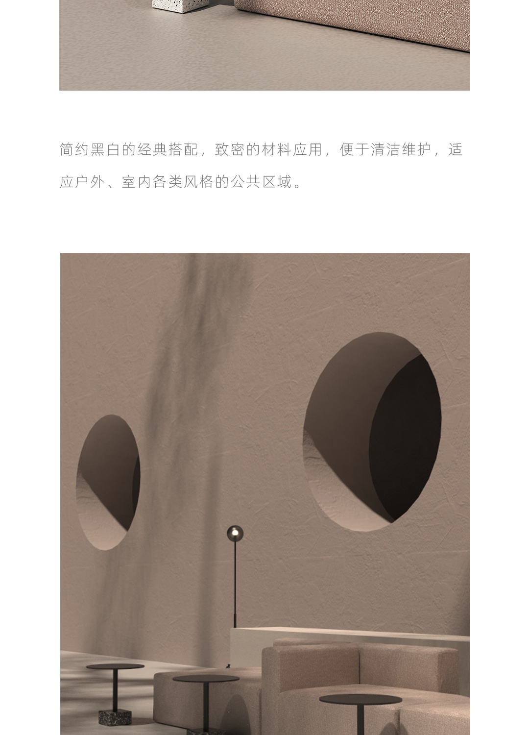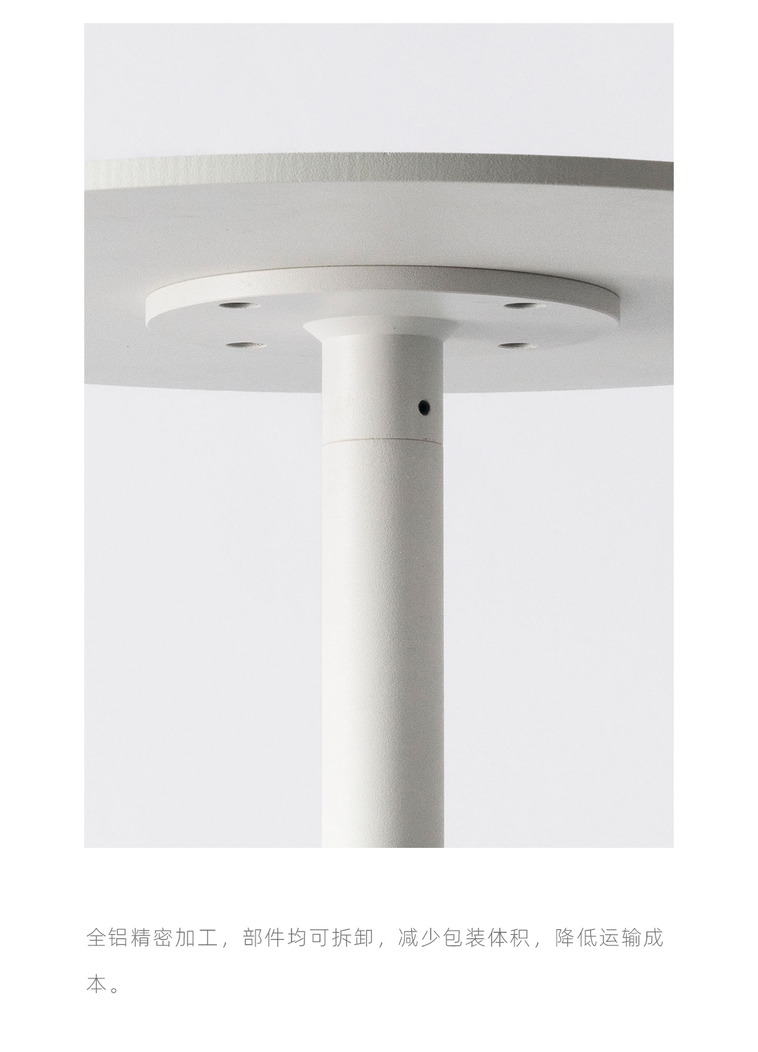 水磨石边几 全铝金属桌面不生锈,耐候粉末喷涂抗紫外线耐候不变色,致密表面防油污,室内户外通用。 全铝精密加工,部件均可拆卸,减少包装体积,降低运输成本。 回收石材边角料,与混凝土混合后打磨,形成经典的水磨石质感,呈现透气自然的机理,是旧时光的记忆。 简约黑白的经典搭配,致密的材料应用,便于清洁维护,适应户外、室内各类风格的公共区域。