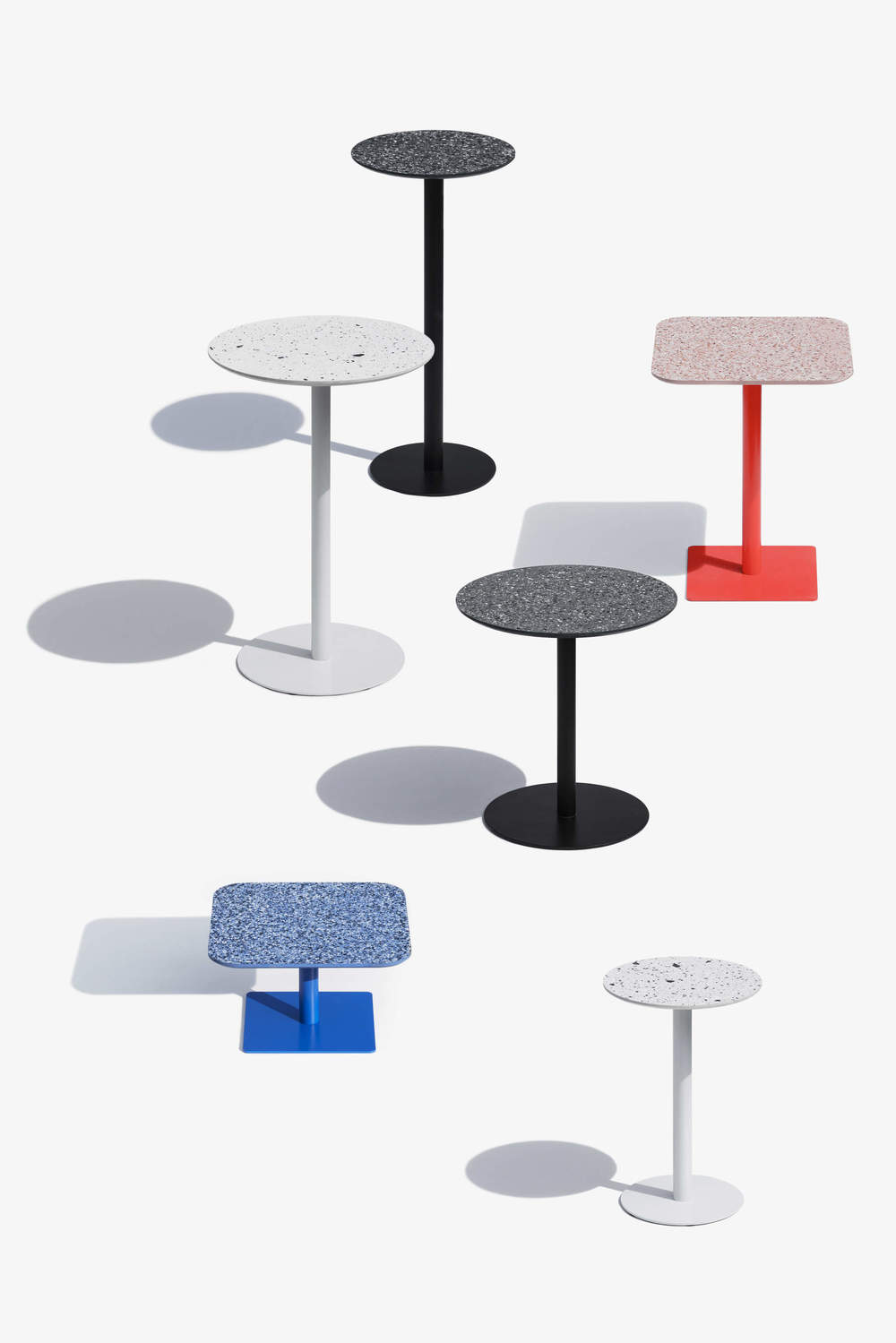 本产品采用了混凝土掺入石英粒的水磨石,随机分布的石英为家具提供了足够的装饰,既简朴又精致。 水磨石板材与支架通过巧妙的结构连结,垂直错开的支架使产品整体更具形式感。 倒角使得整体更具细节,利落的直线,是本土创造追求并相信的简单,和直接的材质表达的手法,没有多余的装饰造型线。