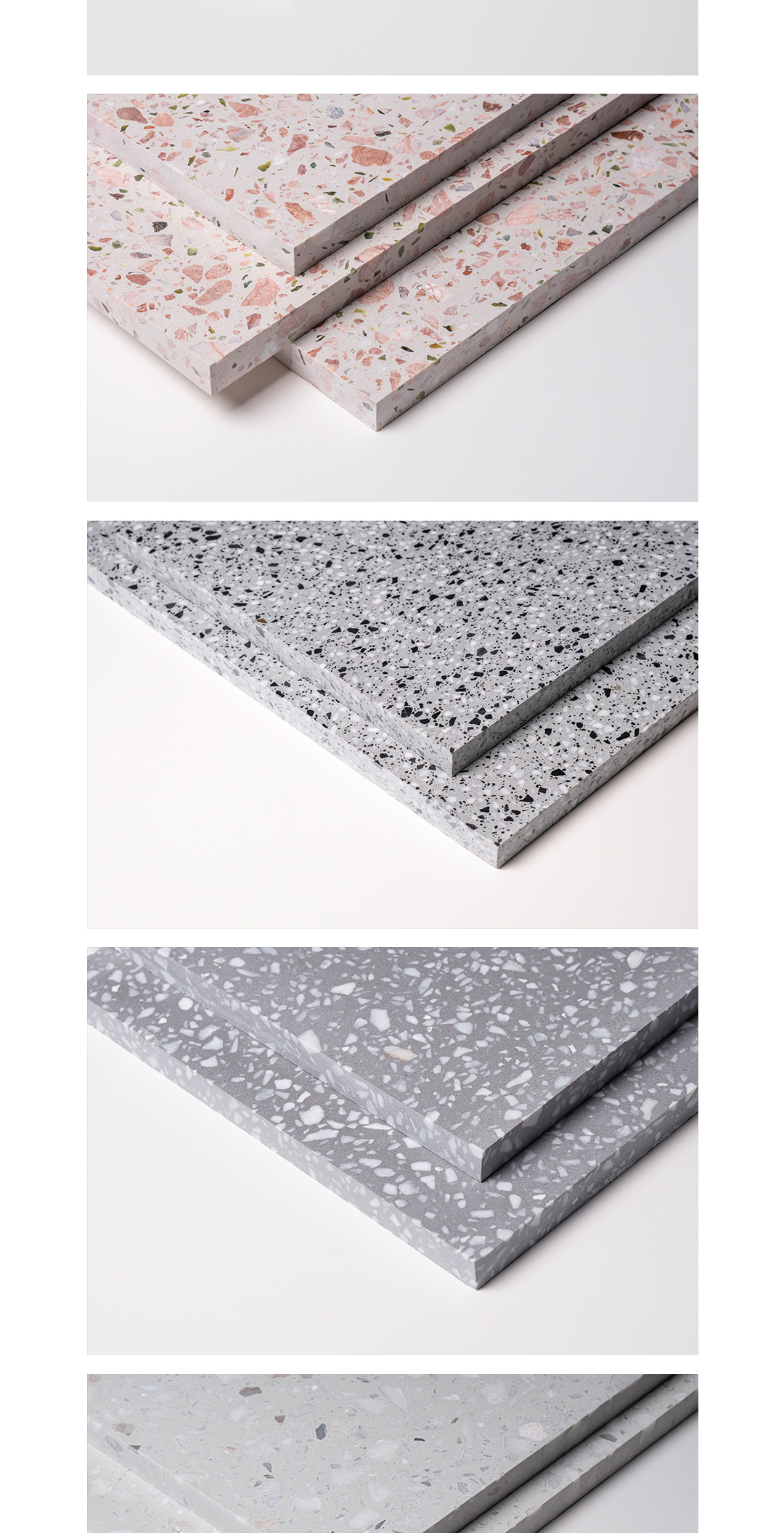 随着天然大理石材不合理开采,社会环境的可持续生态逐渐恶化! 然而人类对天然物质有着不可磨灭的向往和追求,而开采的过程中留下大量的石材的边角料,再利用边角料与混凝土预制搅拌,经过表面打磨抛光做成水磨石装饰板材,这可能是天然石材的挽歌,也是作为地球公民对社会自然生态可持续发展作出的一些探索。