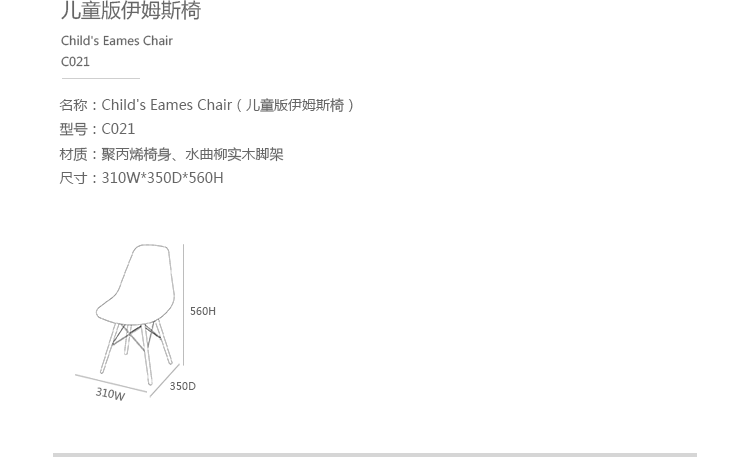 20世纪最有影响力的规格档设计师Charles(1987-1978)及Ray Eames(1912-1988)经典名作,希望为使用者带来愉悦的经验为其设计理念。 本单品为Eames Plastic Chair 系列成员之一,舒适的椅座外观设计是以添加了玻璃纤维强化的塑料来制作,再搭配上各式不同的脚座来增添使用的多样化,值得一提的是Eames Plastic Chair 的创新技术与材质,便它得以成为全世界第一张被大量制造的单椅。拜现今创新的科技所赐,全系列的Eames Plastic chair 终于再次制造,使用环保可回收的聚丙烯材质,求制作线条优美的椅座外壳,不但重量更轻,同时更具有更好的耐热性及抗化学性。