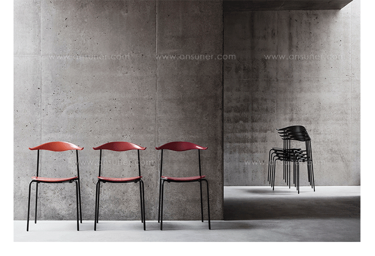 Wegner CH88 Chair,设计于1955年,不过当时没有马上生产。为了纪念大师的100年诞辰,Carl Hansen & Son公司正式启动这个项目并投入生产。蒸汽弯木技术的扶手结合椭圆木质座板以及不锈钢腿的混合材料使用使这把椅子的工业化设计感倍增。同时这把椅子也是可堆叠的,增加了多功能性。这款椅子无论外观还是实用性都做到极致,其中光洁度和框架显得多才多艺。上部结构设有蒸汽弯曲木靠背的背部支撑,靠背的两端有轻微弯曲的手臂,提供了一个自然休息的地方。钢架,直后腿,支撑一个椭圆形的木制座位。这种混合的材料,结合简约的设计,焕发出光、有机、工业的完美表达。