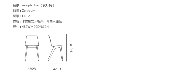 德国设计师Formstelle用简单线条设计出堪称完美的Morph Chair,2006年设计,延续了北欧设计的风格和精良的制作,风靡全球。这款椅子采用进口的水曲柳实木木材制成的框架给人一种舒适休闲的质感。椅子的支架嫁接部分采用榫接工艺,架构稳定牢固。凳脚的定位赋予椅子一个独特的姿势,灵活方便。这款简单的椅子由于其精美时尚的外观深受小资白领的喜欢。