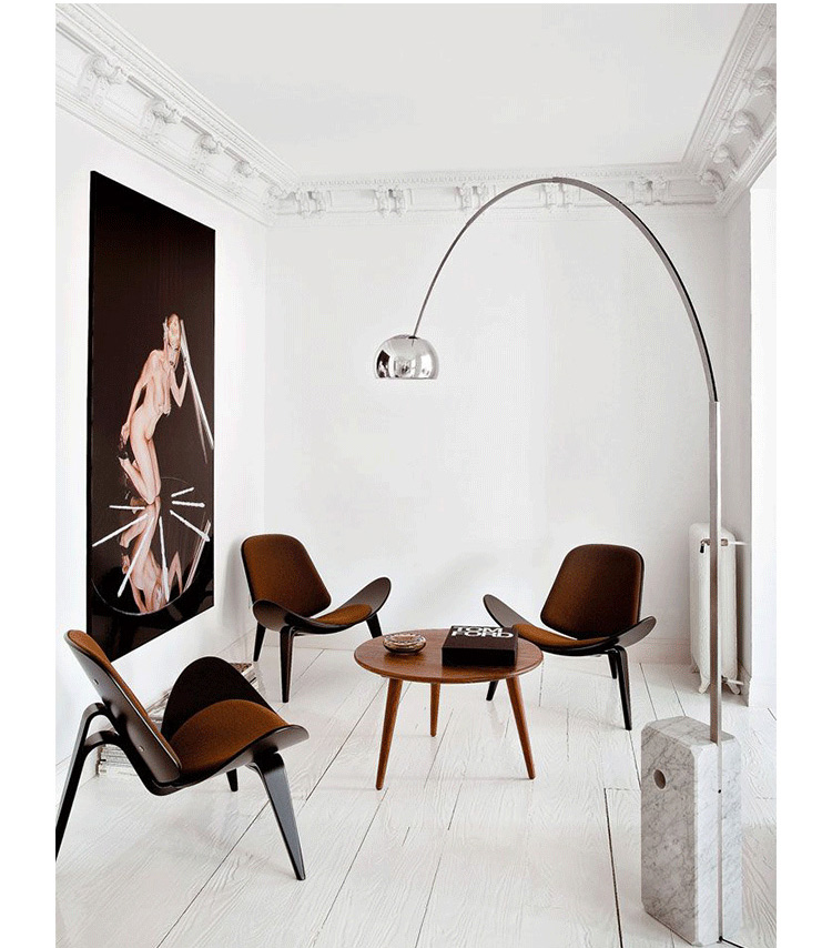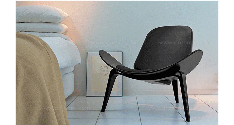 Wegner shell chair(三脚休闲椅)是由Hans J. Wegner设计的,椅子一共有三个脚,座椅像一个笑脸,又像胡子,设计师给他的编号为:CH07,外形现代、美观、独特,既可以有来看书读报,也可以用来休闲娱乐,成了20世纪最佳的设计之一。