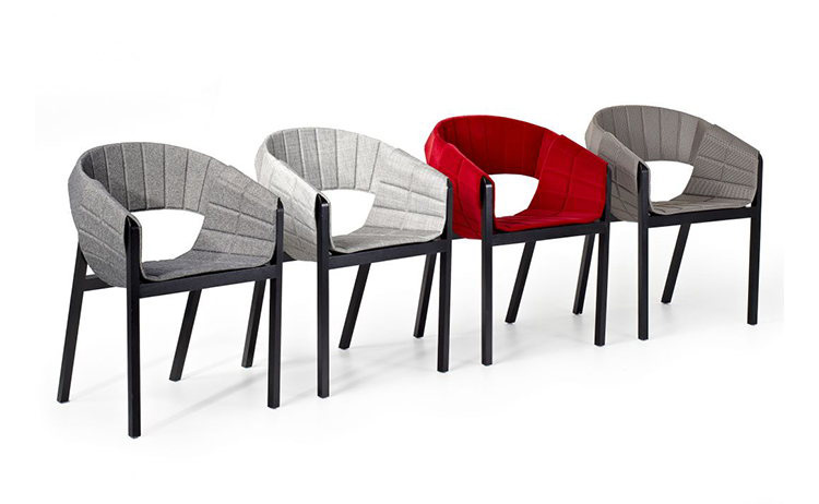 The armchair is a stylish piece of furniture that can change its appearance at will: the essential innovation of the armchair is its cushioning, which lies over the supporting structure like a ceiling. The precisely manufactured pieces of fabric are fastened with snap-buttons, which allows easy replacement and radical alternation of the chair's impact using colour changes. The base is made from minimal wood cross-sections and features the hallmark of Jörg Boner: an appearance that is both graceful and sturdy.