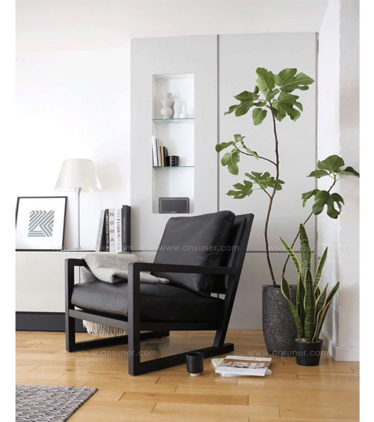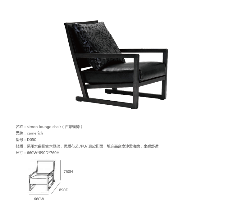 The Simon Lounge Chair features simple,clean design with a modern flourish.The solid wood frame supports a down-layered seat cushion and a loose feather down back cushion. An extremely popular lounge chair,the Simon is available in leather or fabric upholstery.Fabric covers are removable.