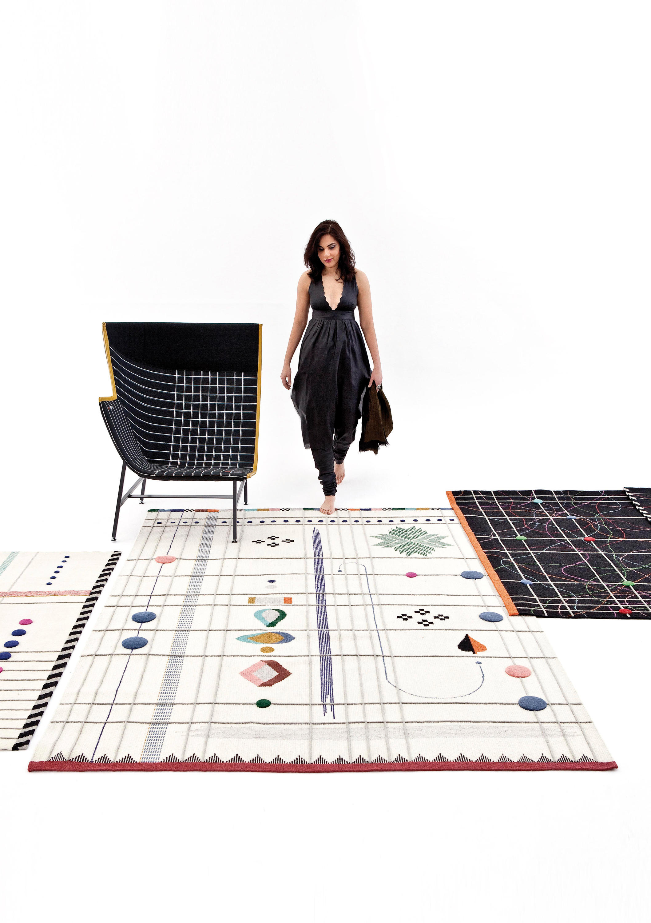 除了美丽的羊毛卷曲,Rabari有四个地毯(两个是米色的,一个是黑色的,一个是橄榄绿的),还有一个突出的设计,一幅Doshi Levien设计了一种精致的节奏和独特的视觉美感组合的画布。