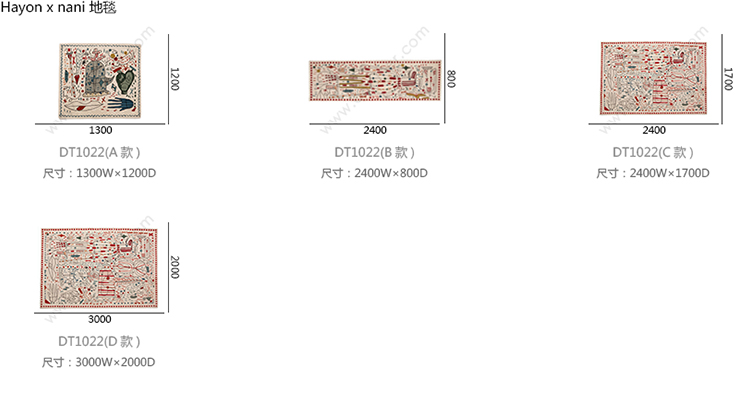 Hayon x nani 地毯 系列尺寸/示意图