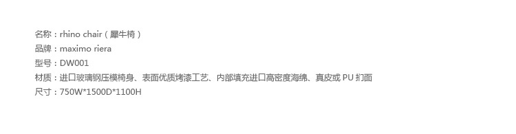 西班牙设计师 Maximo Riera 设计了一组包括章鱼、犀牛、海象、狮子等在内的 15 件动物造型座椅系列皮椅。这个系列的动物椅集合了不同的物种,从哺乳动物到爬行动物,甚至包括昆虫。每个设计都保留了动物的自然活力,同时又准确还原动物的外观特征。这些动物椅的初衷是一种尝试,希望以动物的栖息来反映和捕捉大自然的美,并向我们星球上的整个动物王国致敬。设计师除了表现动物的野性美,也在善意的提醒人们要维持生态的平衡,尤其对濒危物种多加关注,以实现人与自然的相互依赖和谐共存。Rhino Chair(犀牛椅)是他之前一个系列家具作品的延续。这一系列作品将家具和动物结合到一起,每件家具的主要部件都装饰有一种动物。这次的作品和之前设计的“章鱼椅”有着许多相似之处。“犀牛椅”内部有一个框架用以支撑整个椅子的重量并加强稳定性和平衡性。 在这次的创作中,Maximo Riera 选用犀牛这种动物来表现自然的能量和威力。当设计尚停留在概念阶段时,Maximo Riera 意识到创作中的最大障碍是合适的比例。制作完成的犀牛椅具有极强的雕塑感,并拥有“王座”一般十分优越的比例,凸显了动物本身尊贵霸气的品质。