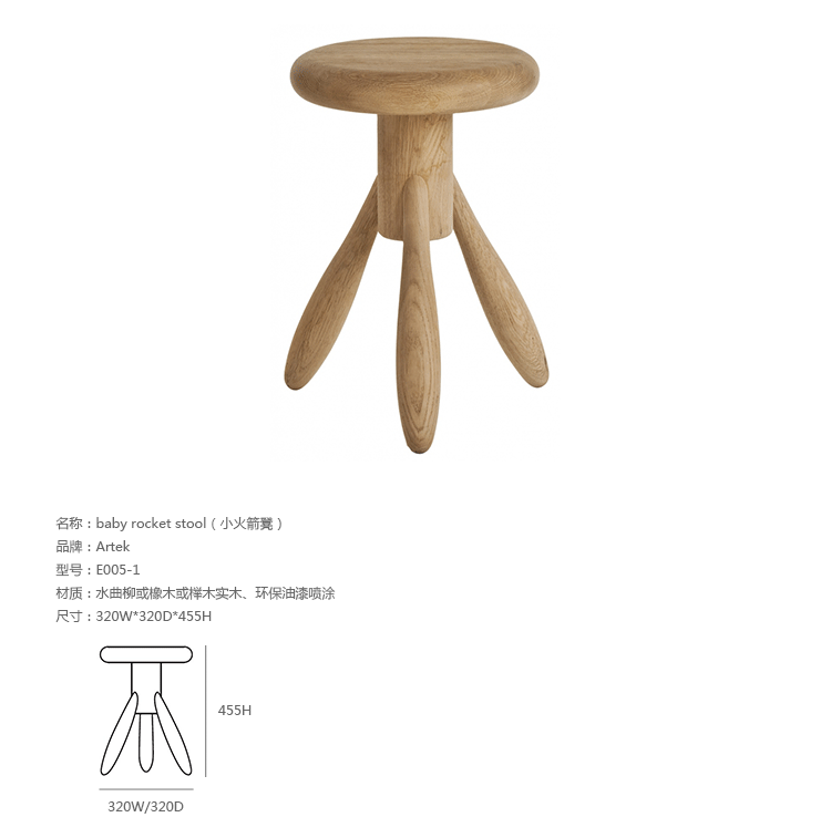 baby rocket designed by eero aarnio for artek is a bar stool whose sturdy puffy shape seems inviting to seat down and is the rocket bar stool's sweet little sister. eero aarnio is not very known for its wood products, but the rocket stools show that aarnio is skilled also in this field. rocket is a bar stool whose sturdy puffy shape seems inviting to seat down. aarnio originally designed the rocket stool for his kitchen and it became part of artek's selection after tom dixon saw it in aarnio's kitchen.