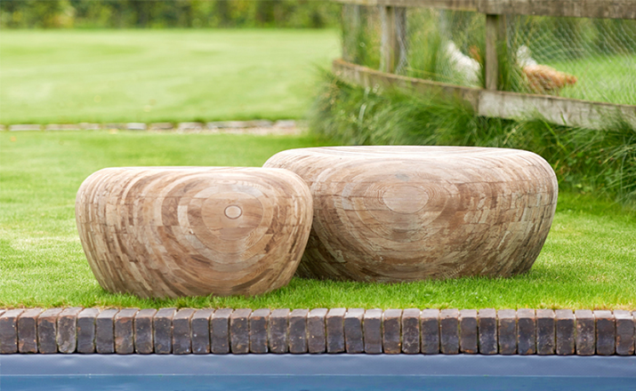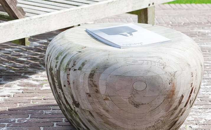 The Motley drums show innovation in function, technique and form.Small pieces of wood are knitted together with nger-joints into a large 12mm thick sheet(cedar).Together they make a solid block.The cedar drums are highly suitable for interior and exterior use.The birch drums are only suitable for indoor use.Table-seat-pedestal.