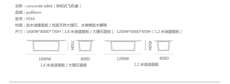 由Emmanuel Gallina设计的Concorde Table(协和式飞机桌)风格简约,通过简单的形式充分发挥了木料的自然特征。朴素优雅是Concorde长桌的独特之处,也是设计师的风格表现。长桌采用横纹核桃木和施佩萨特橡木,桌面有四种抛光和三种磨光大理石可供选择。