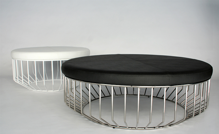 Blending sloping angles and taut lengths of bent metal are a modern interpretation of the wiry idea initially conceived by Warren Platner.The series is made up of a suite of tables,side tables and benches and fitted with luxurious solid wood or upholstered tops.