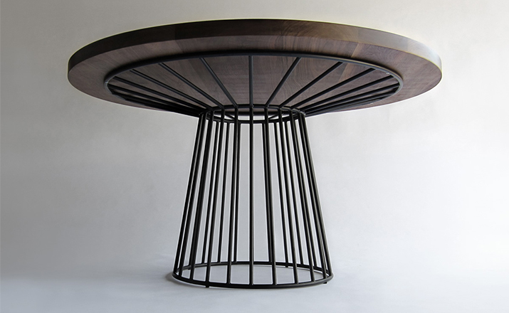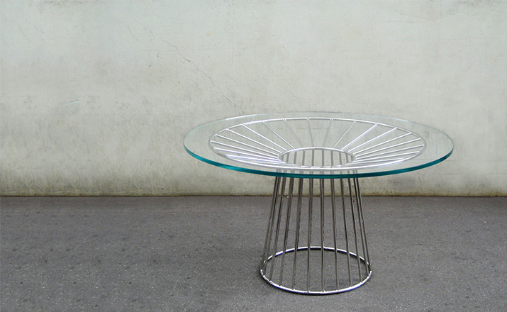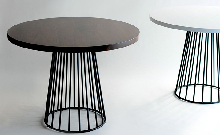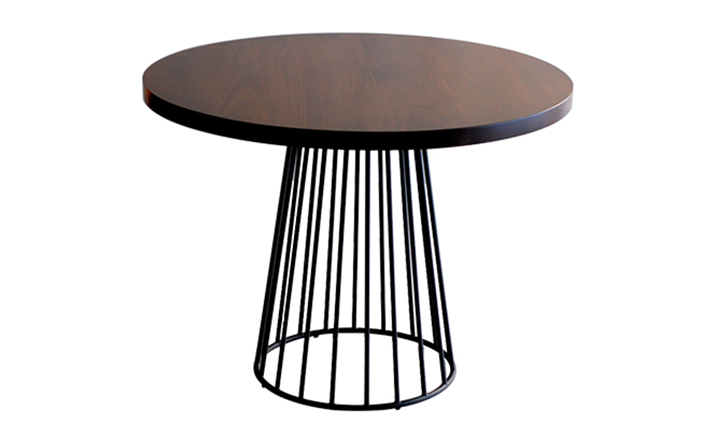 "Tapered lengths of metal meet with intention in a modern interpretation of the wiry idea initially conceived by Warren Platner.This compact cafe table with grand presence is suitable to be used in multiples or in smaller dining areas."