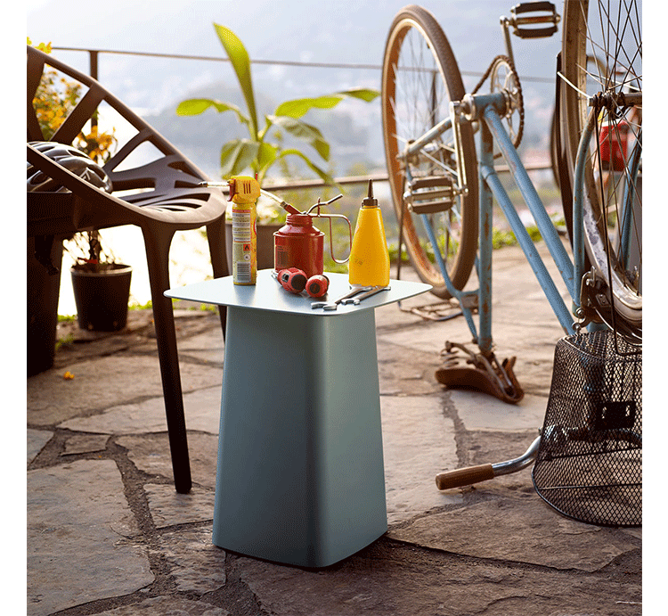 Metal Side Table(金属边茶几)为设计师兄弟Ronan和Erwan Bouroullec为vitra设计的。金属边茶几的设计造型是可长可短的立体柱子,茶托向外扩张,构造出优美的立体空间几何形状。可以放在长沙发或几张椅子前面,非常舒适。您可以将它放在卧室、会客室或是办公休息室,在宽敞的、不拘一格的桌面上,陈列精美的艺术品、新鲜的花、杂志或是专业书籍。