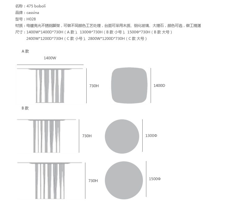 C款:2400W*1200D*730H、2800W*1200D*730H -