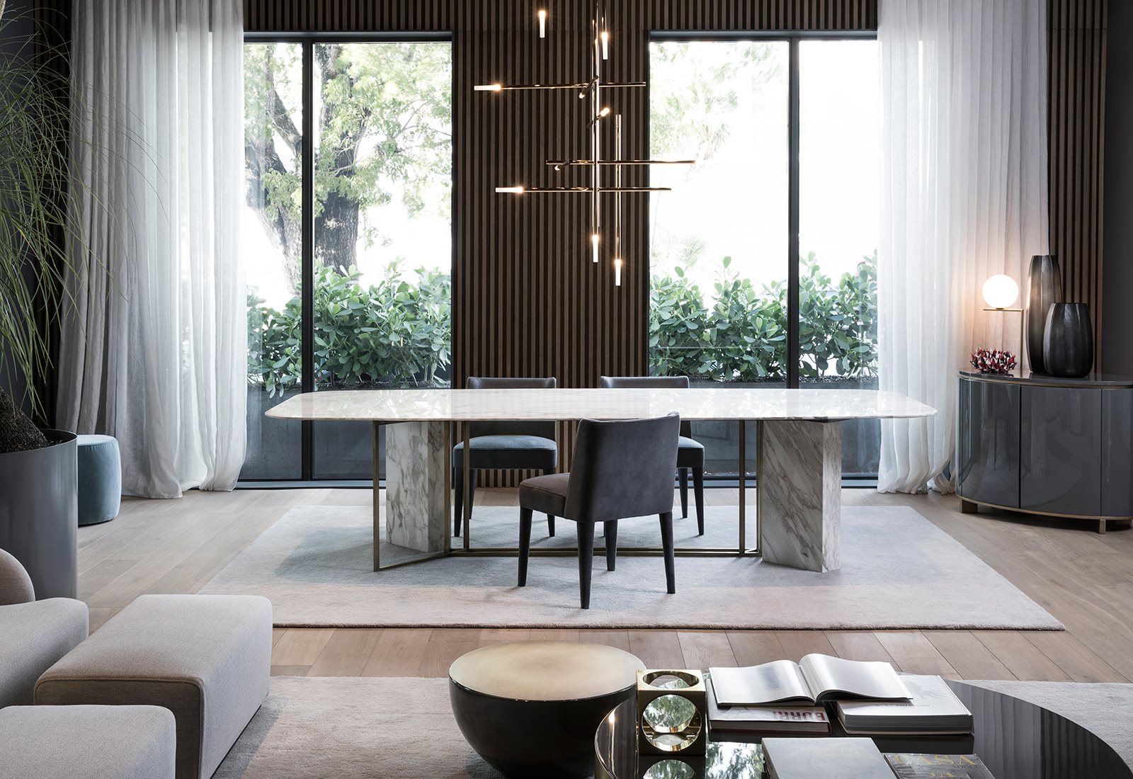 固体和空隙之间的相互作用是这种设计的一个很强的特点,其中一个平衡了另一个创造一个独特的和对比的作品与无限的可能性。