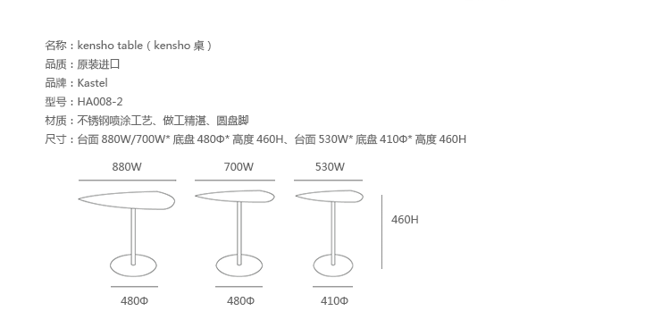 Kastel是一个在室内装饰领域极具影响力的公司,该公司具备高水平的综合生产能力,是一个充满活力的公司。Kastel公司产品多种多样,包括办公座椅,社区座椅和家庭座椅等等。Kastel在对人体工程学进行深刻研究之后,制定了现在的生产线,产品的设计以舒适为主,在生产过程中每一步都严格遵循这一宗旨,为客户提供高性能的产品,满足客户对舒适的基本要求。这也是Kastel公司的经营理念。kensho table(kensho桌)系列桌子采用不锈钢喷涂工艺、做工精湛、三角形脚架,整体造型像盛开的花朵一般,颜色可选黄色,橙色,白色等颜色,多张平凑在一起,宛若一个小小的花园,且与其他家居搭配非常完美和谐,集艺术性与功能性为一体。