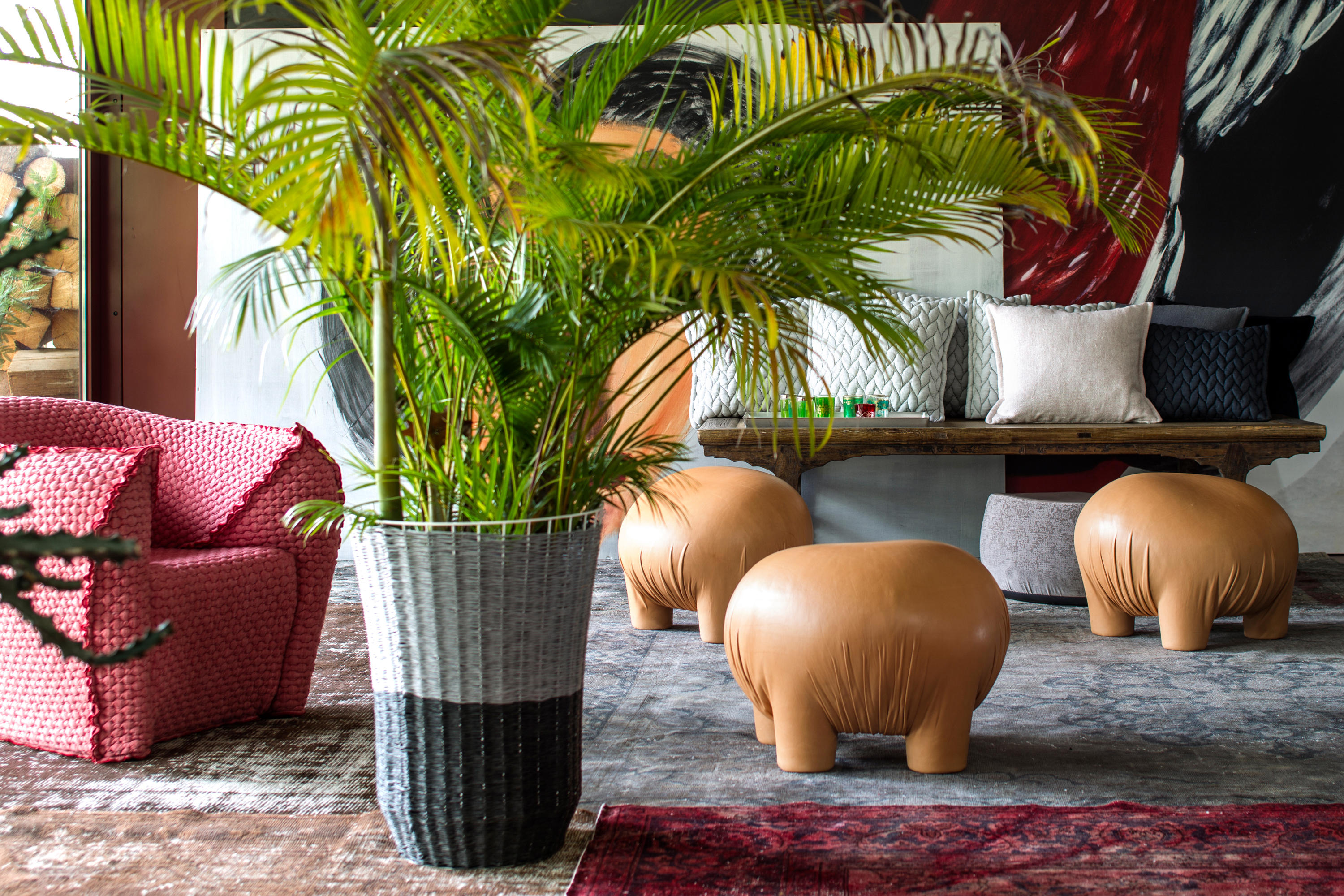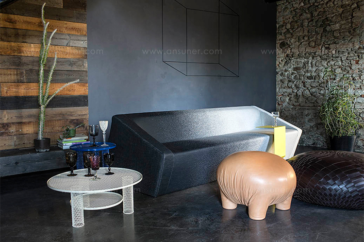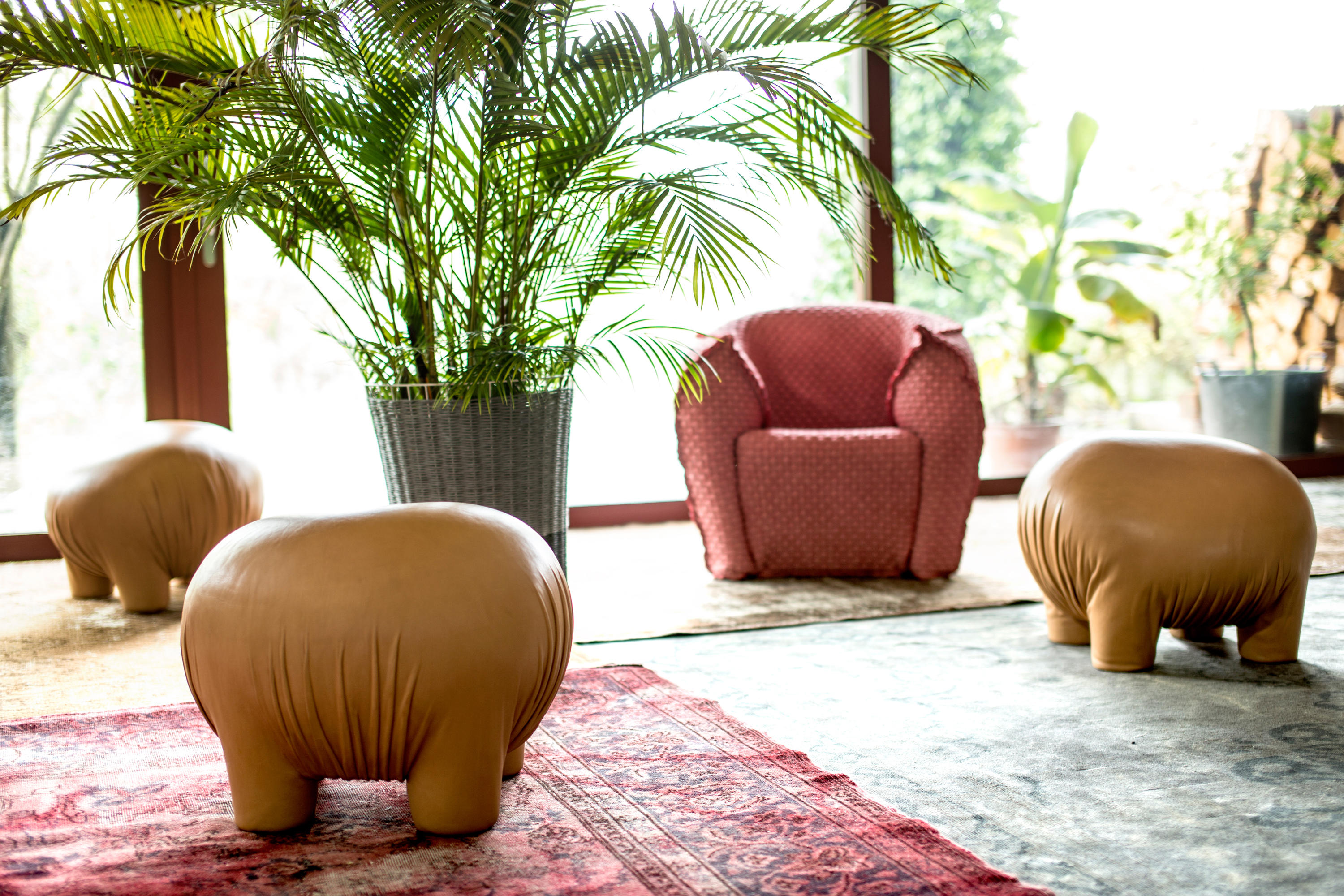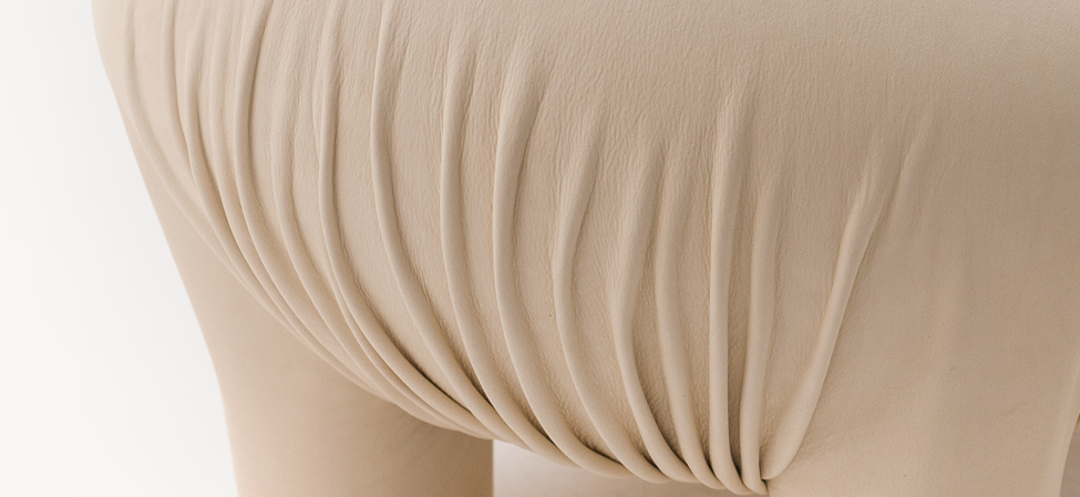 有点令人不安但又温顺又无害的生物。“异常”是一个充满矛盾的项目,它介于对身体的想象和对家庭宠物的设计之间。自然色皮革的选择可以解释为一种暧昧的、神秘的动物变形,或者更简单的说,颜色可以作为一种温暖的、令人安心的面部粉的提醒。这是一个令人惊奇的家庭生物,一个童话般的变形,几乎是超现实的,它结合了一个物体的实用性和好玩的刺激。