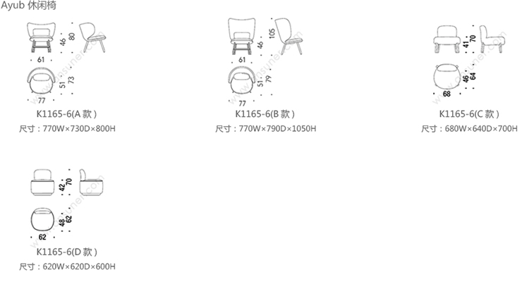 Ayub 休闲椅 系列尺寸/示意图