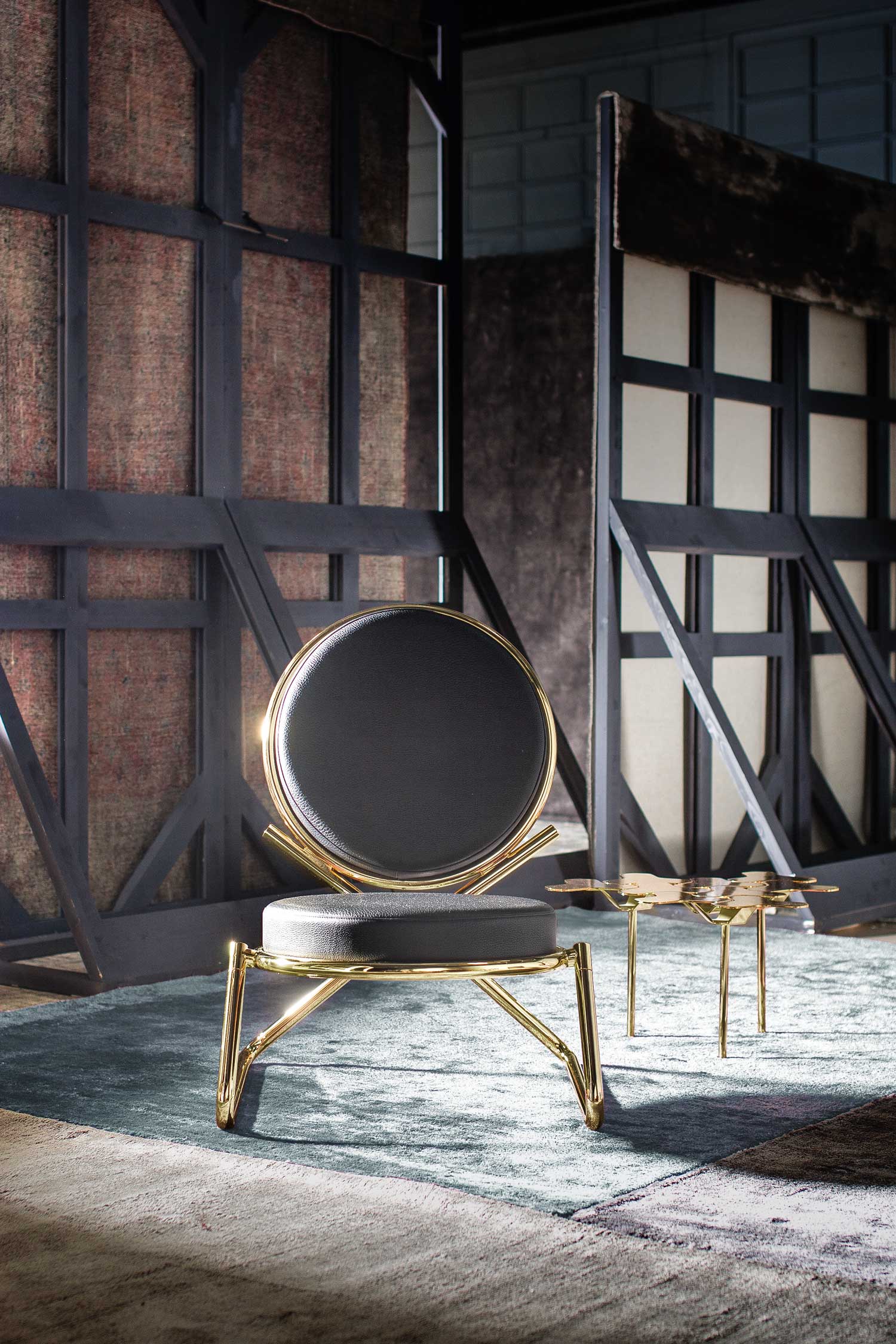 两个圆圈,两个基本模块接枝到本领域的结构几何结构中,去除了灵感,公开地传达了最大限度简化的趋势。这是高品质工业生产的前奏,这是一种优雅的经济,由镀铬钢框架提供的可能性表达,将设计结构设计成一个完整的座位家庭。这样,一把椅子和一把凳子就诞生了,没有扶手,加上一个小小的双座沙发,这是一种精致的正式进化,由良好的品味和阶级所决定。这是一种回归秩序,向一种同时奢华和合成的语言过渡。