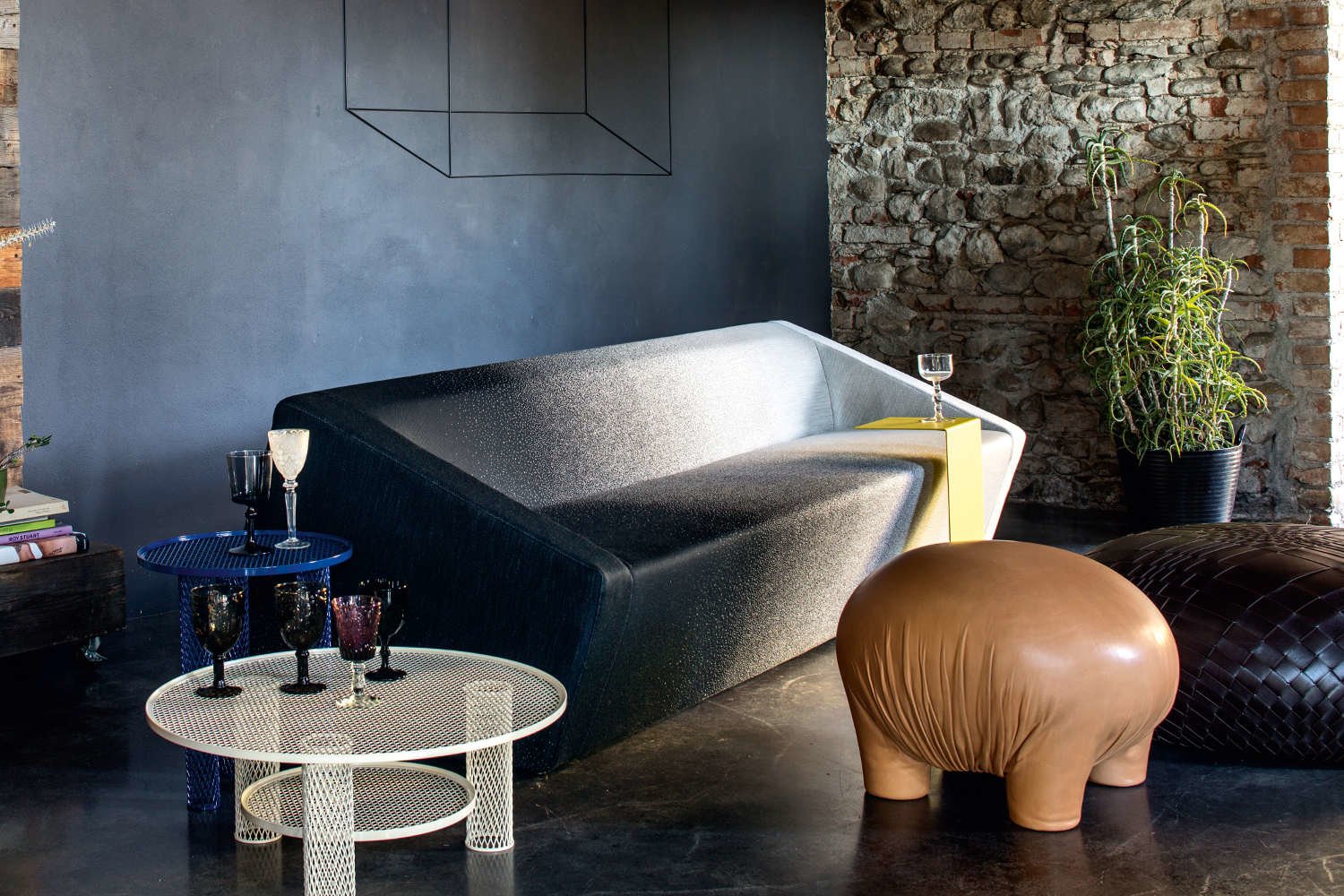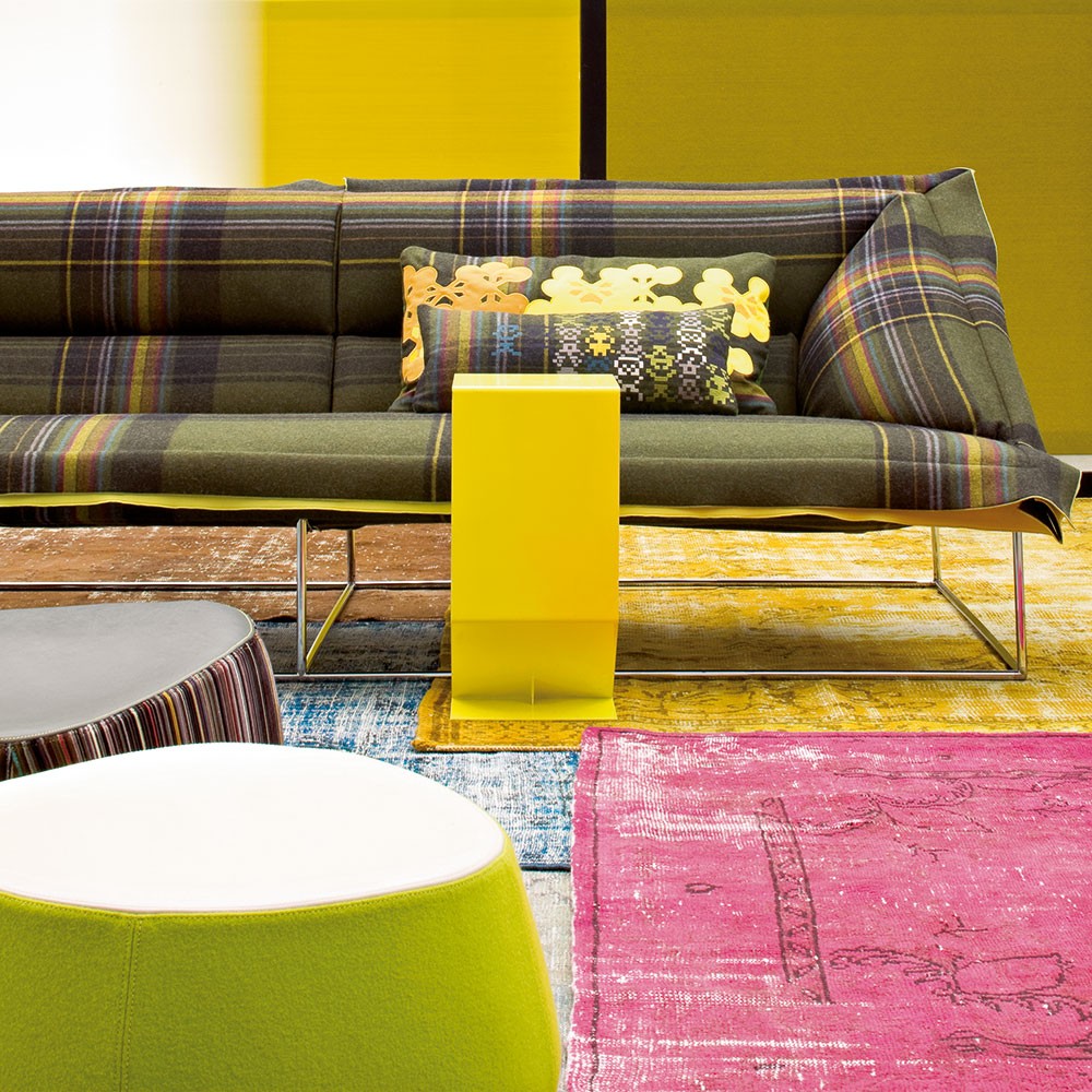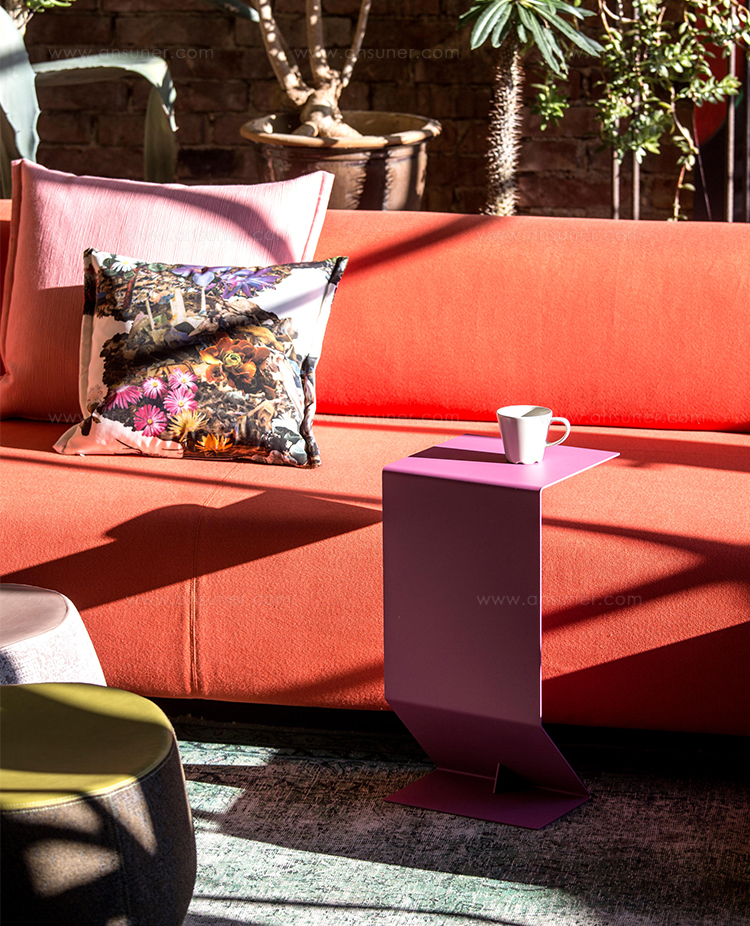 悬臂式桌子被设计为高度灵活和通用的拉升表面,以配合低矮的沙发座位。