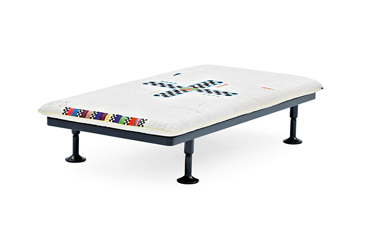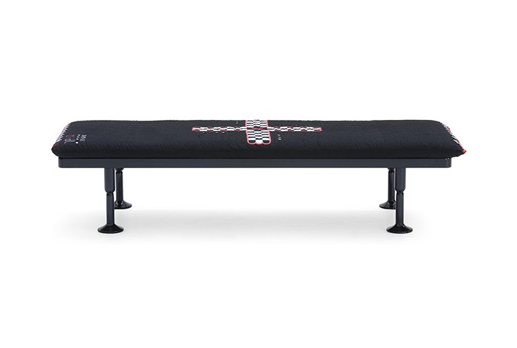 Charpoy,意思是“四条腿”,是对印度大床的反思。Charpoy有一个手工制作的棉花和丝绸床垫装饰由宝贵的手工刺绣。这种装饰是一种游戏的摹本,类似于草稿,在印度,这让人想起了战争时期,王国和妻子被作为赌注赢了。印度轻便床是一种极具价值的物品,它浓缩了手工处理的传统、工艺技巧和丰富程度,与意大利工业生产的黑色漆面与底层木基形成了鲜明的对比。